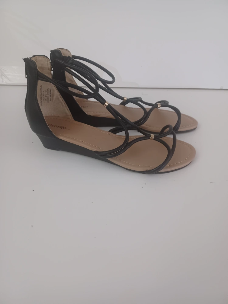 Cute black wedge sandals from George in a size 8. They feature a strappy design and a zipper closure at the back. Perfect for adding a little height and style to your outfits!