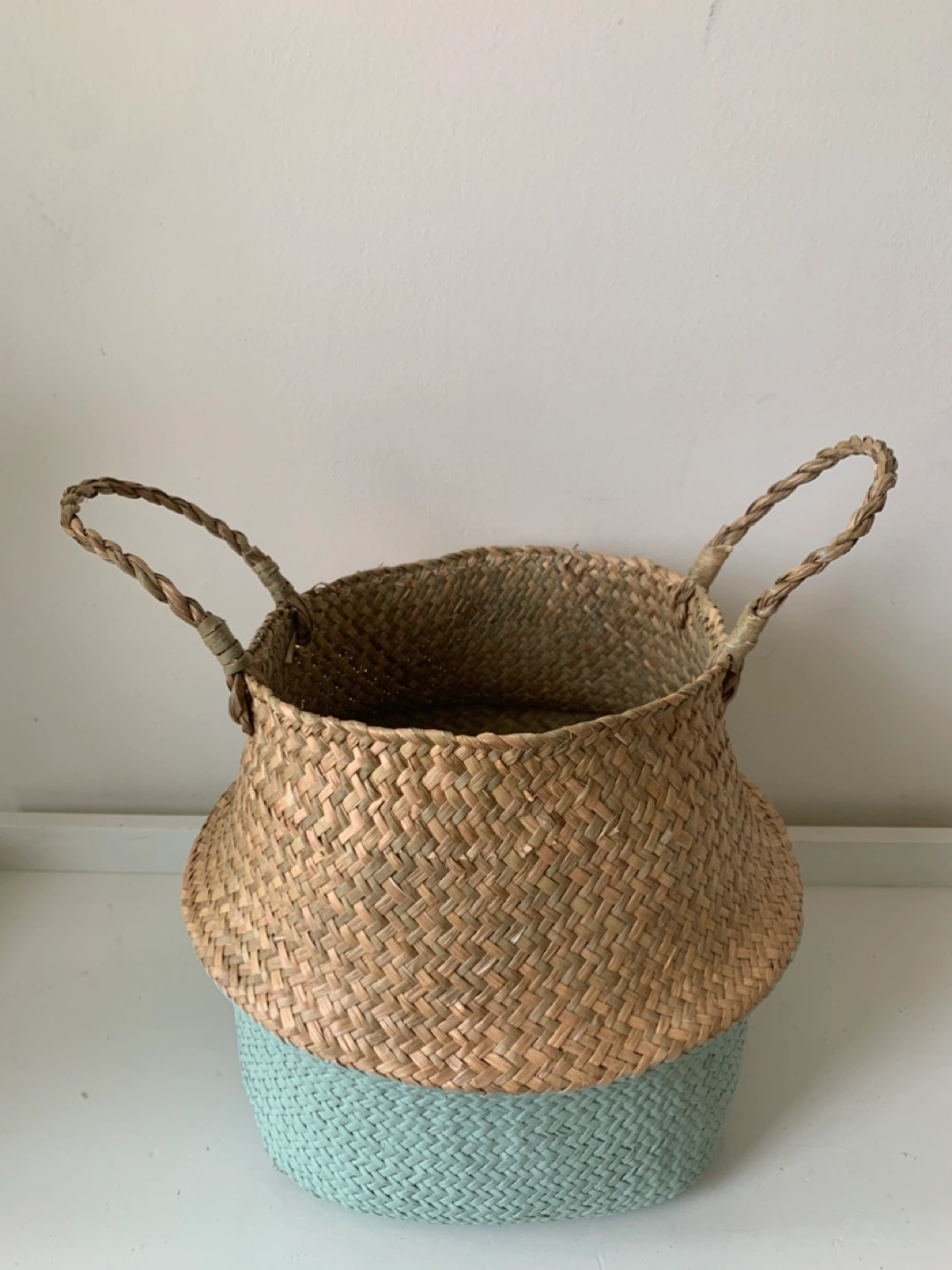 This is a lovely woven seagrass basket, perfect for adding a touch of natural charm to your home.
