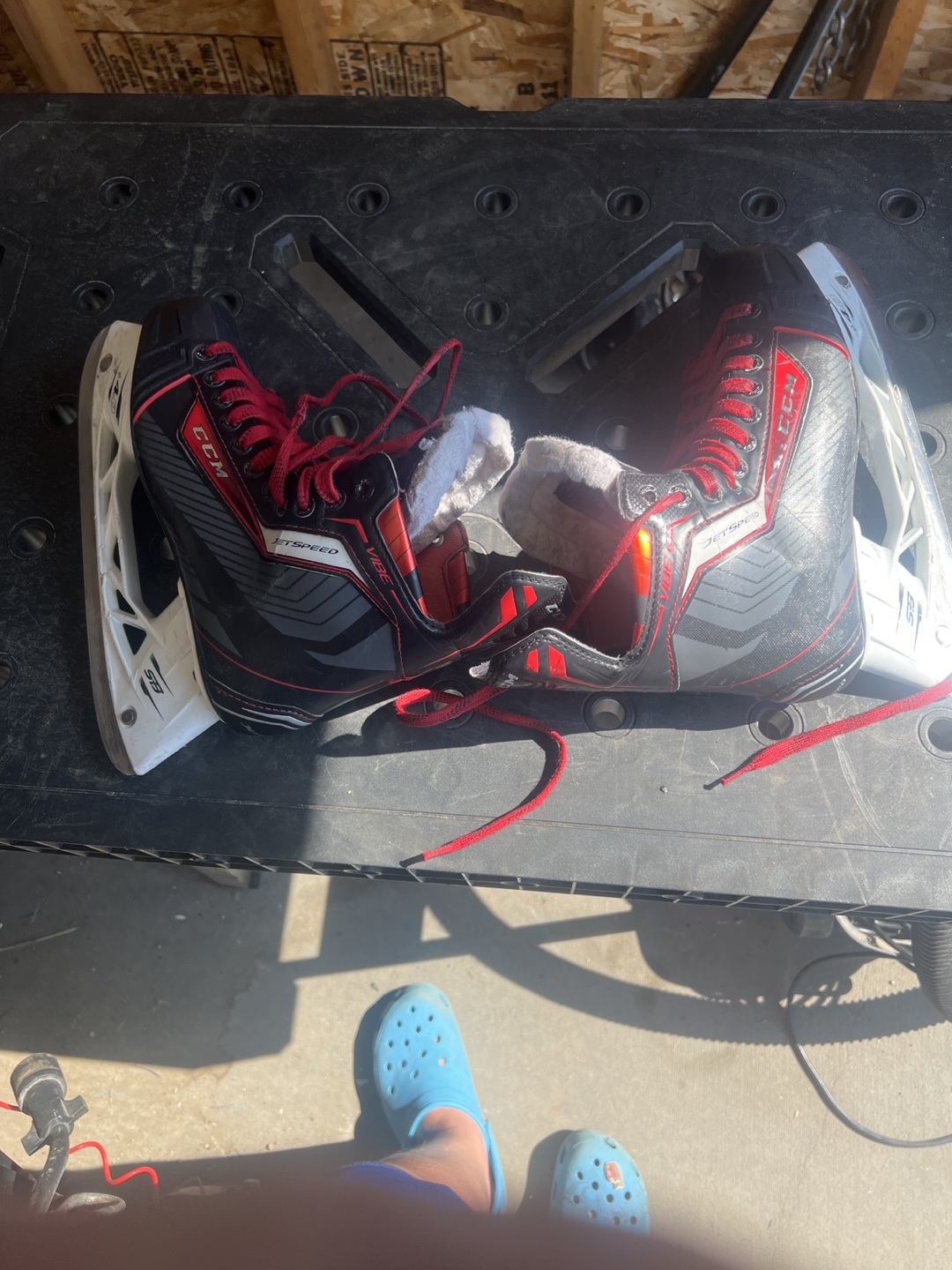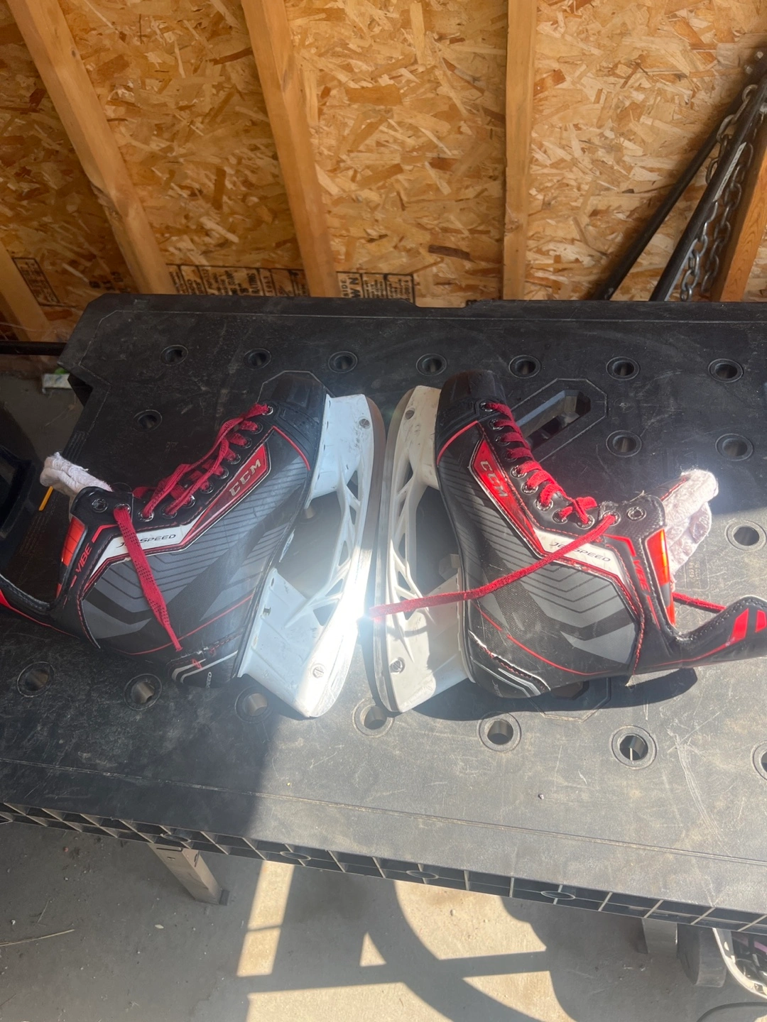 Selling a pair of CCM Jetspeed hockey skated I used them for 2 seasons and they got to small so I got a new pair the boot is in solid condition and so are the blades they’re a size 9 US men’s you might want to replace the laces they’re pretty beat up