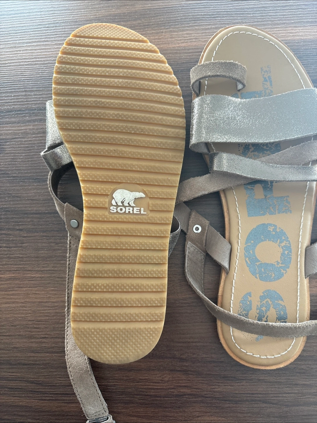 Cute Sorel sandals in a women's size 8. These sandals feature a stylish strap design and are in good condition. Perfect for summer!