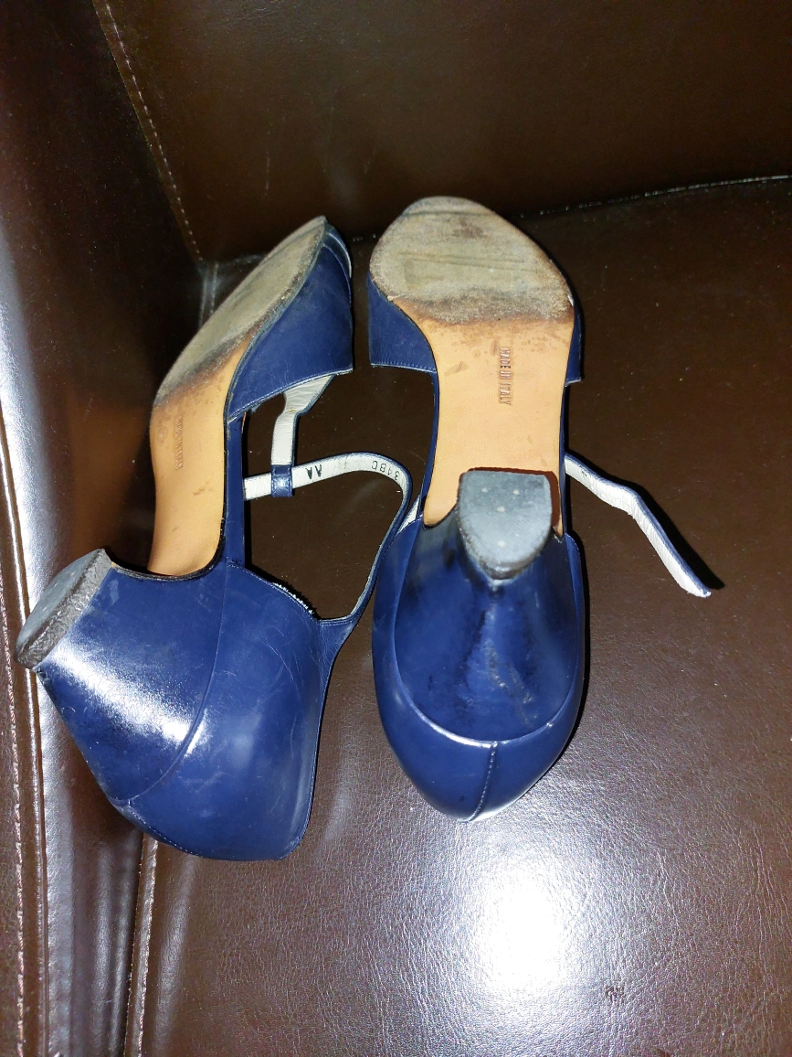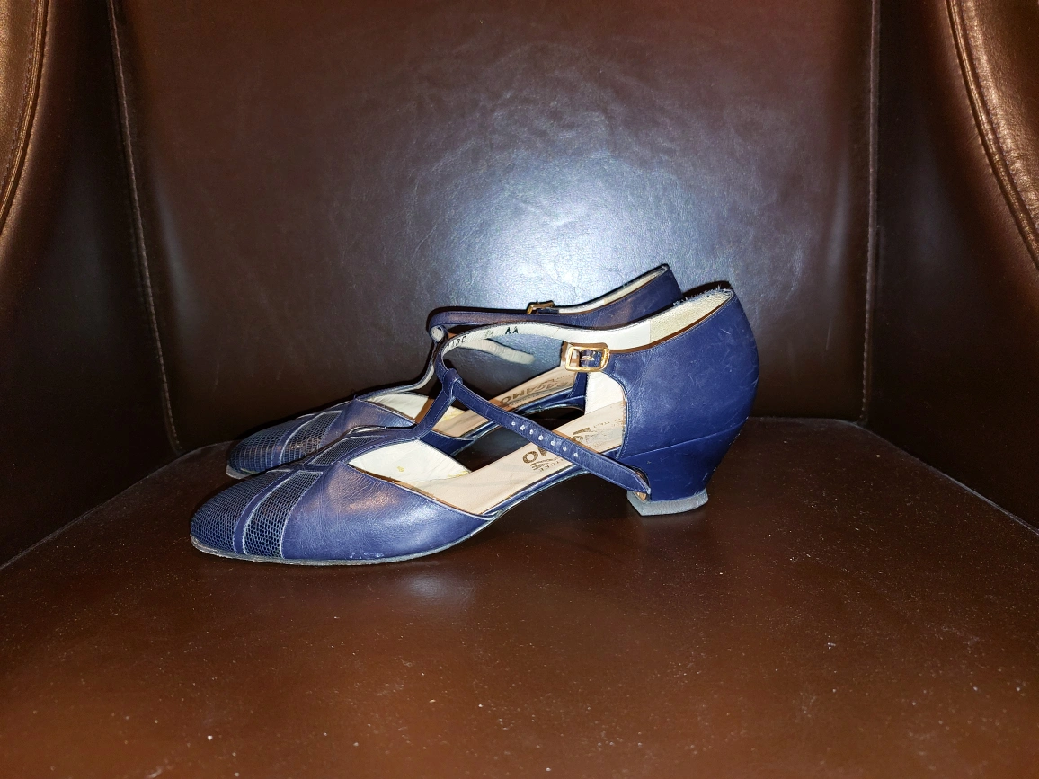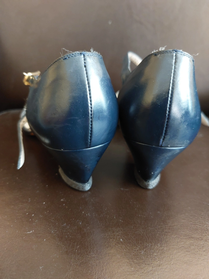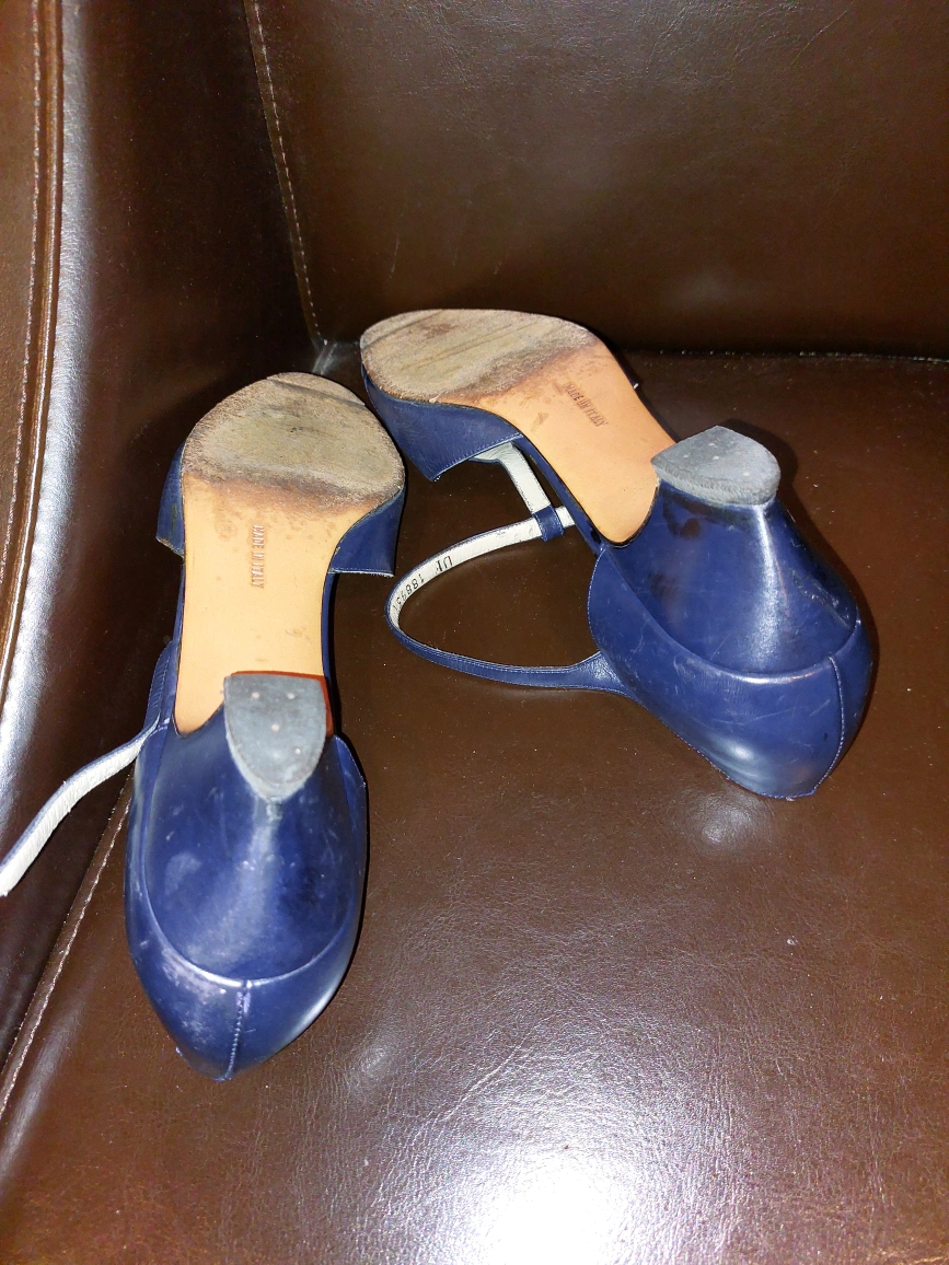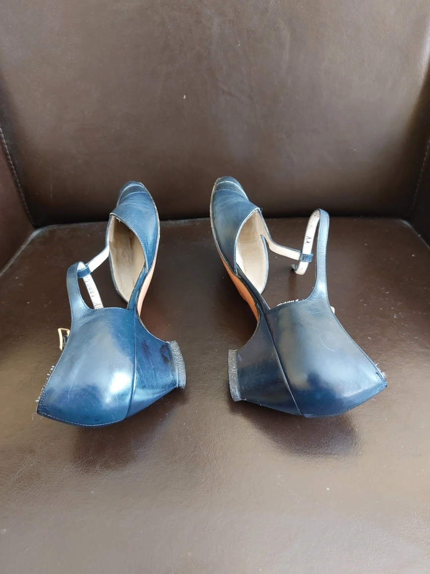 Selling a pair of vintage Salvatore Ferragamo heels in a lovely blue genuine leather. They are marked as size 6.5 AA. They have soft real leather lining, very comfortable. They are in used condition, as shown in the photos. The heels are 4.5 cm high. Perfect for adding a touch of vintage style to your wardrobe!