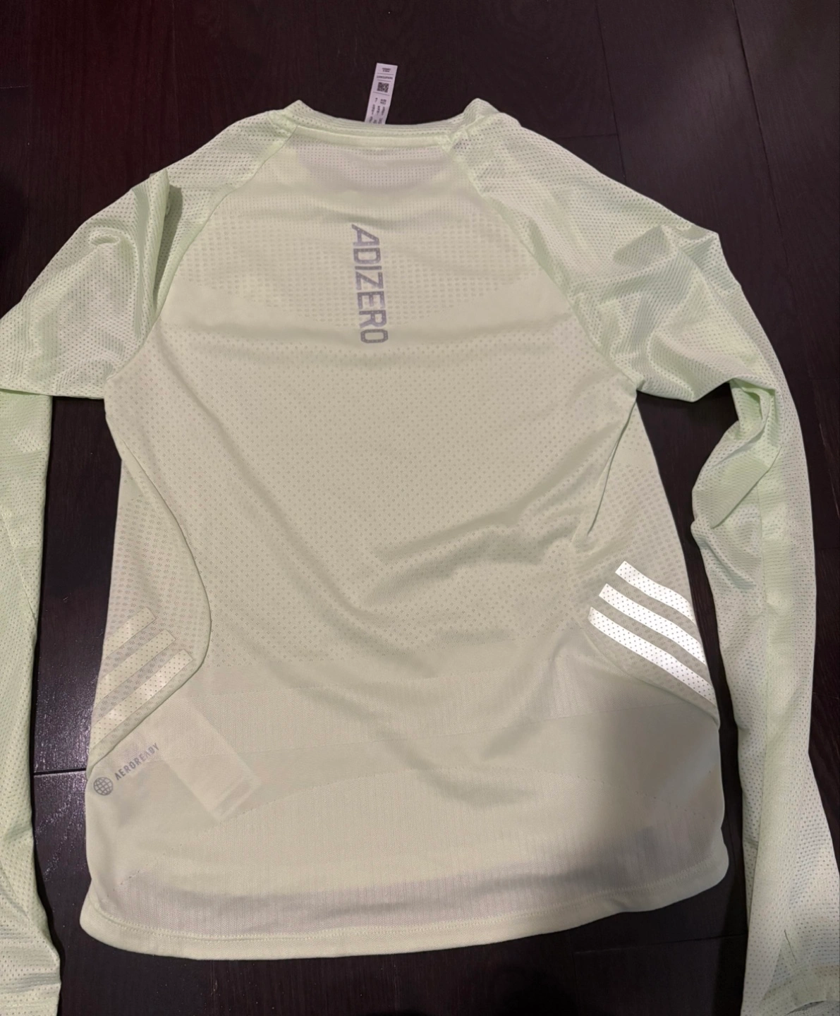 Selling an Adidas Adizero long sleeve shirt in size small. It's a light neon green colour and in great condition. Perfect for running or working out!