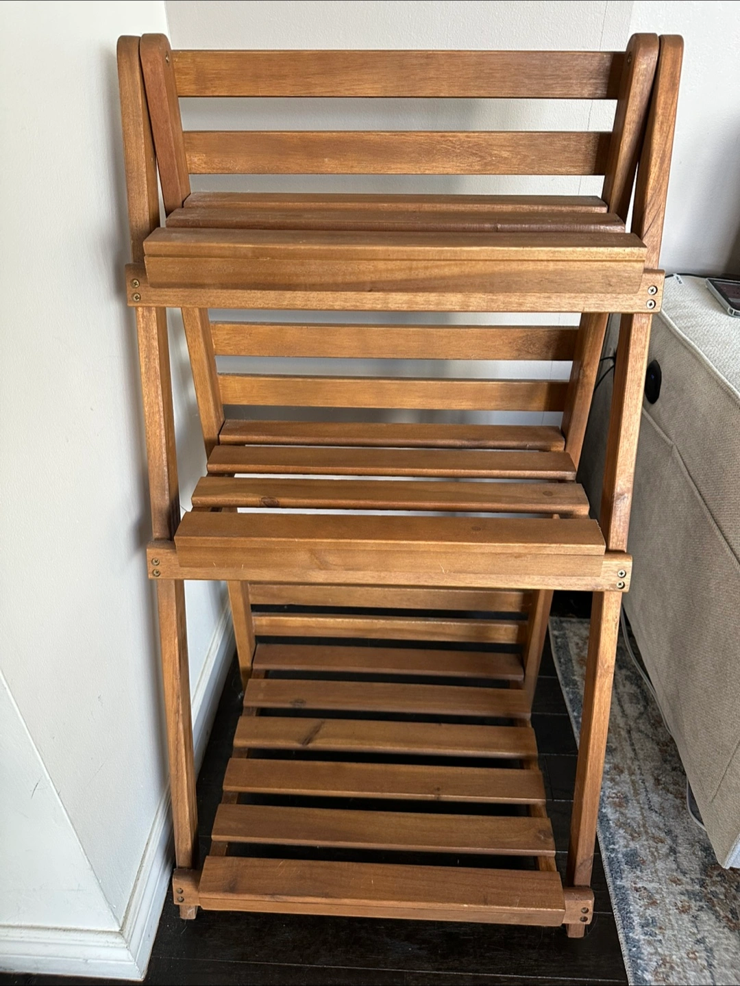 Buy & SellWooden shelf | shoe rack | plant stand - foldableWooden shelf | shoe rack | plant stand - foldable$353-tier solid wood shelf in excellent condition. Folds up for easy storage or transport. Pick up only.Dimensions50x39x92cmWHERE TO MEETCheck LocationView MapSELLERverifiedMonicaRosedale28721 reviews3 chats·14 favorites·257 viewsSEND CHAT TO SELLERHi Monica! I’m interested in your listing.Hi Monica! I’m interested in your listing.Get the Karrot app to chatSign In to chat