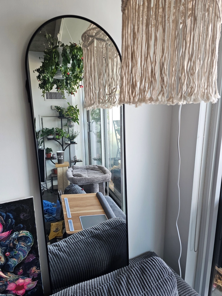 Selling (2) Harritpure arched mirror with leather strap for hanging, perfect for adding a modern touch to your bathroom or living space!