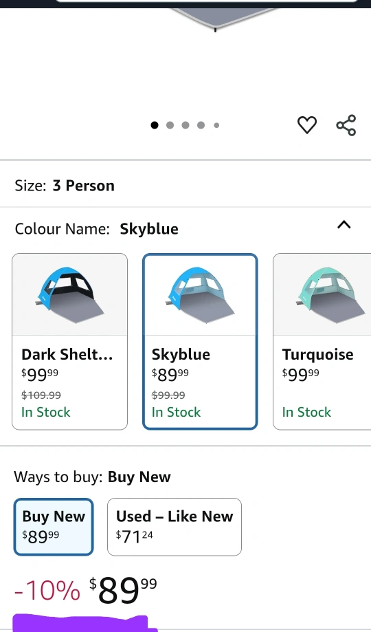 New Gorich Easy Pop Up Beach Tent for 3-4 Person