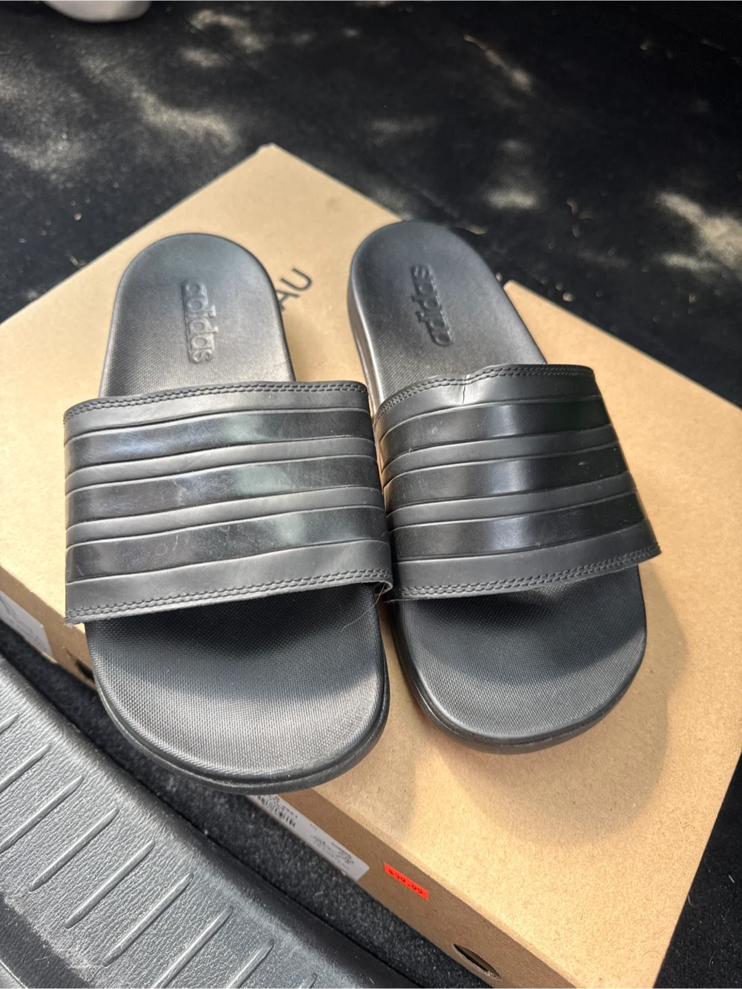 Selling a pair of Adidas Adilette Comfort Slides in black. They're in great condition and super comfy for everyday wear! Perfect for slipping on after a workout or just lounging around the house. Size is not marked, but they fit like a women's size 8