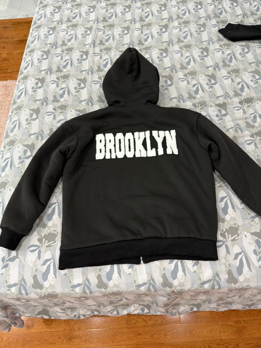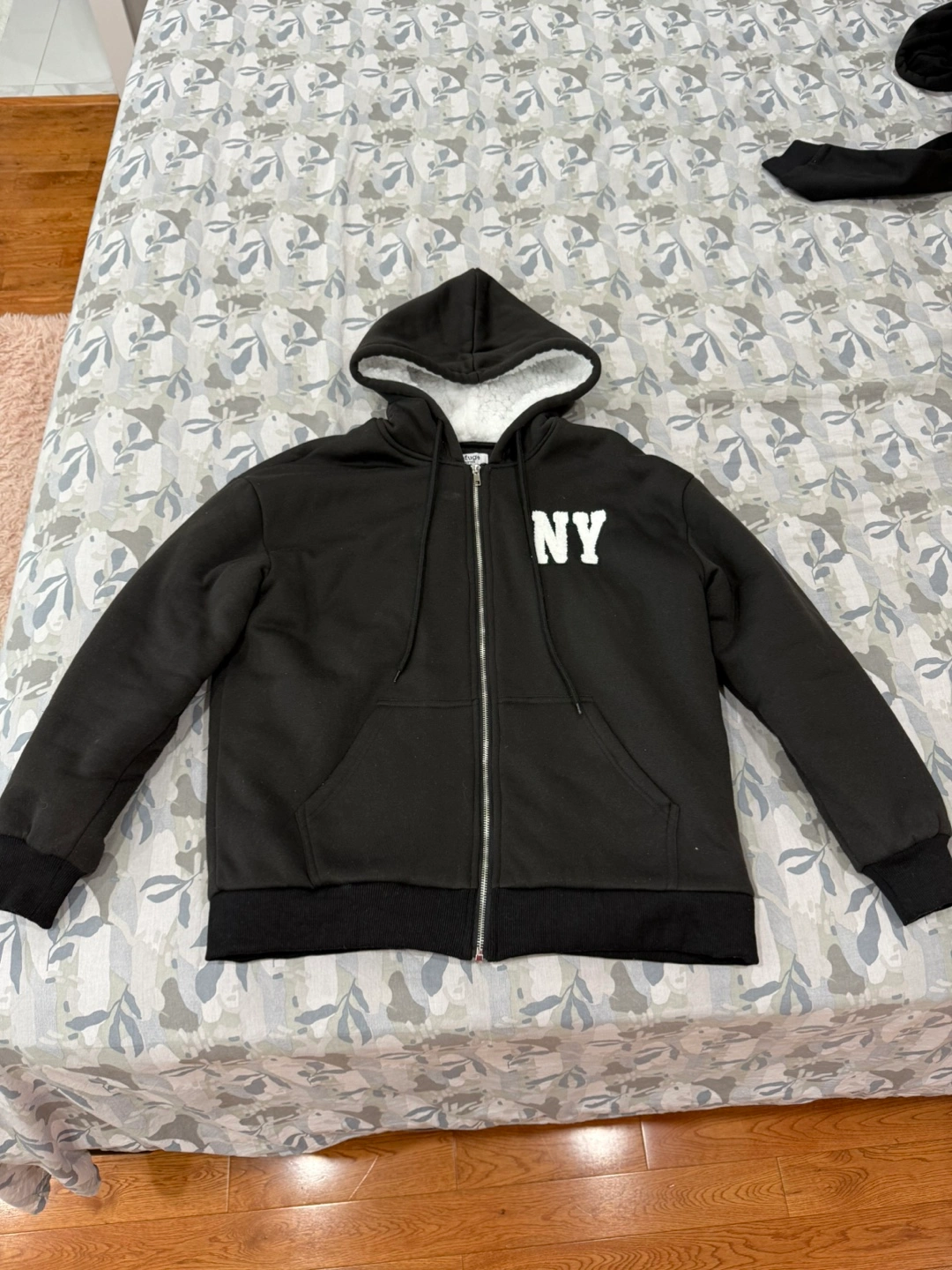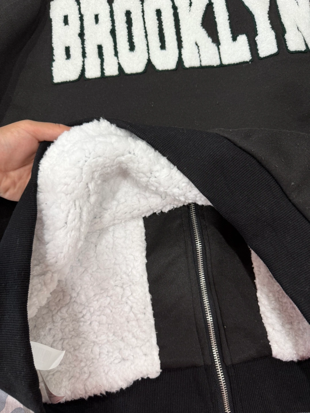 Cozy up in this black hoodie featuring 'NY' on the front and 'BROOKLYN' on the back! It's sherpa lined for extra warmth and comfort, perfect for those chilly Canadian days. Completely brand new never worn.