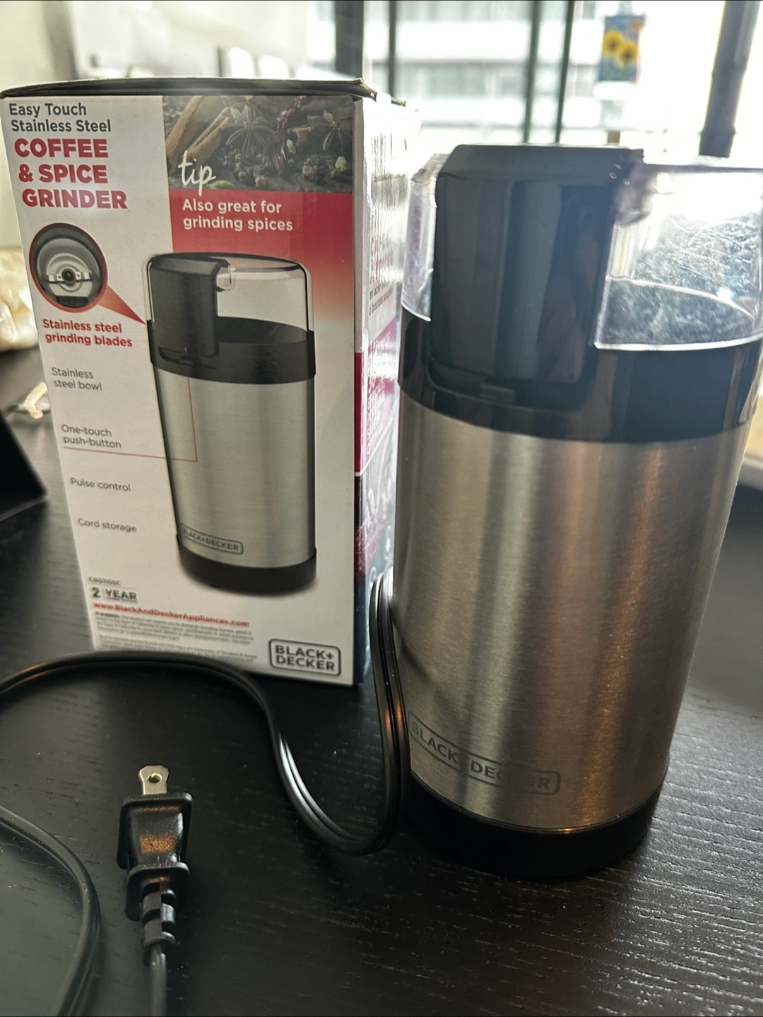 Selling a Black+Decker coffee and spice grinder. It has stainless steel grinding blades and easy touch push-button control. It is designed to grind your favourite herbs and spices. Package Box included