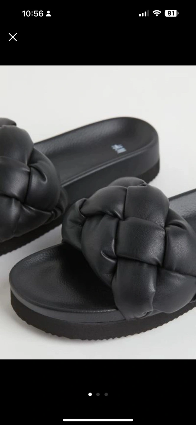 Selling a pair of H&M black braided slides! They're super comfy and stylish for everyday wear. Perfect for adding a touch of chic to your casual outfits!