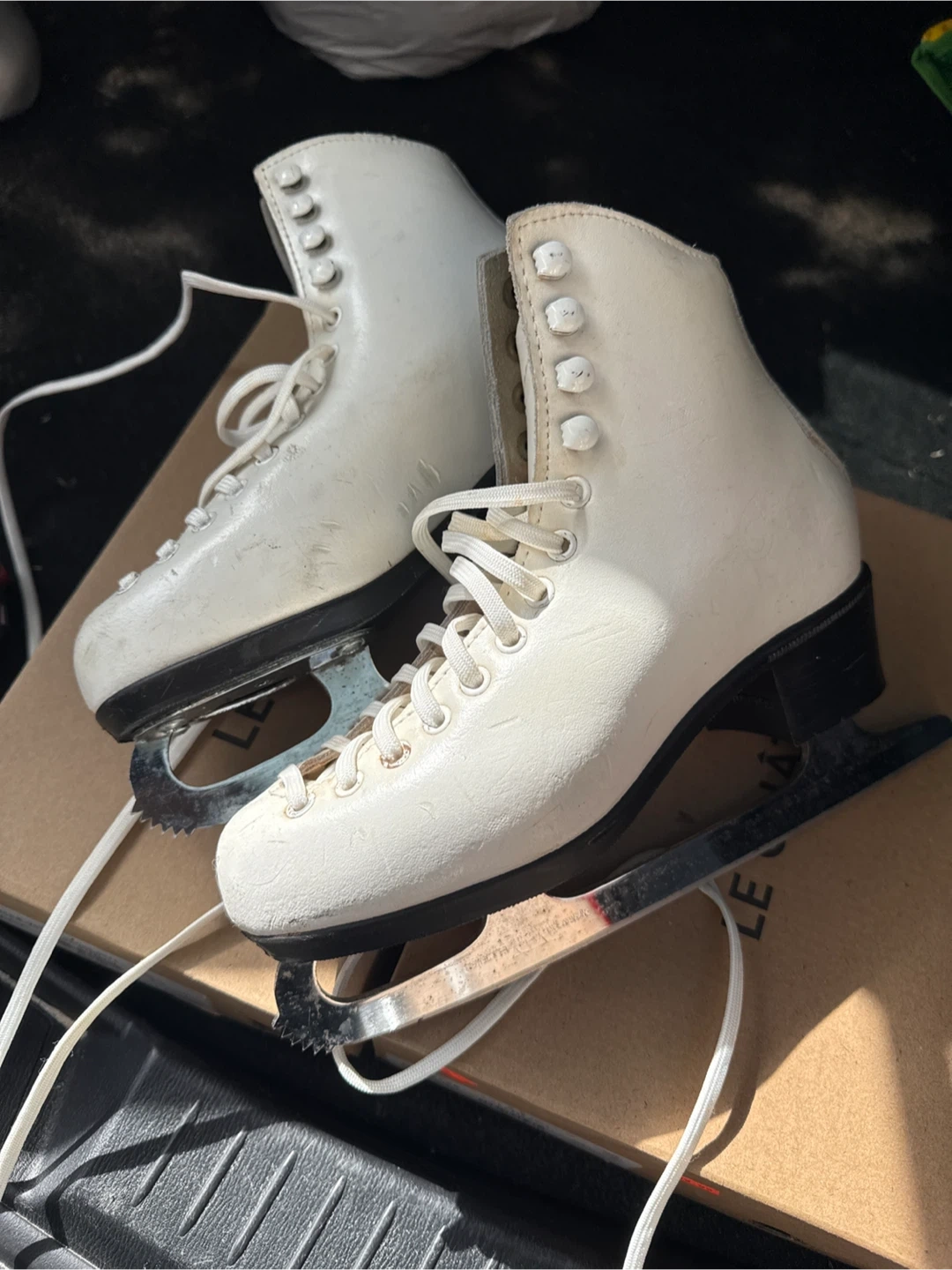 Selling a pair of white figure skates! They show some signs of use, but are still in good condition for recreational skating. Great for beginners or anyone looking to enjoy some time on the ice