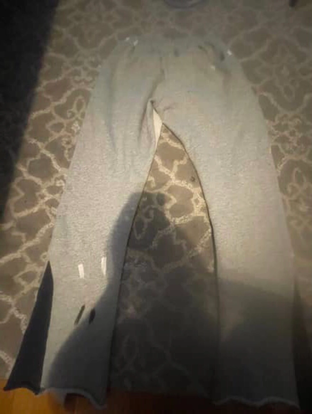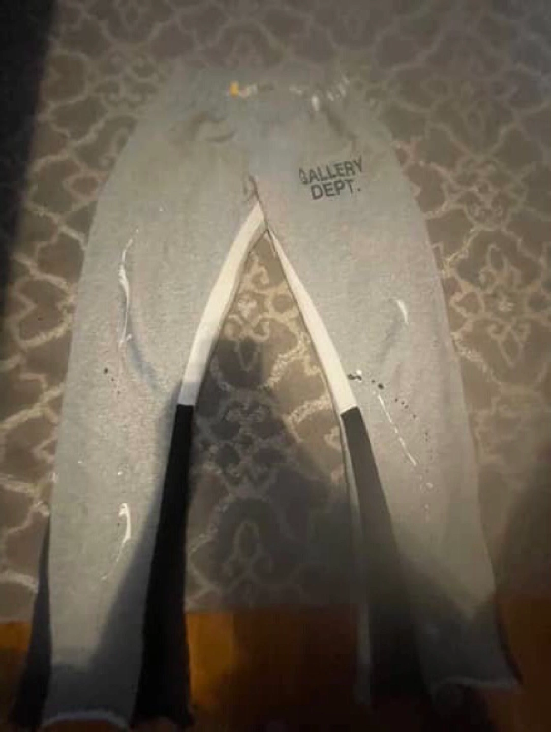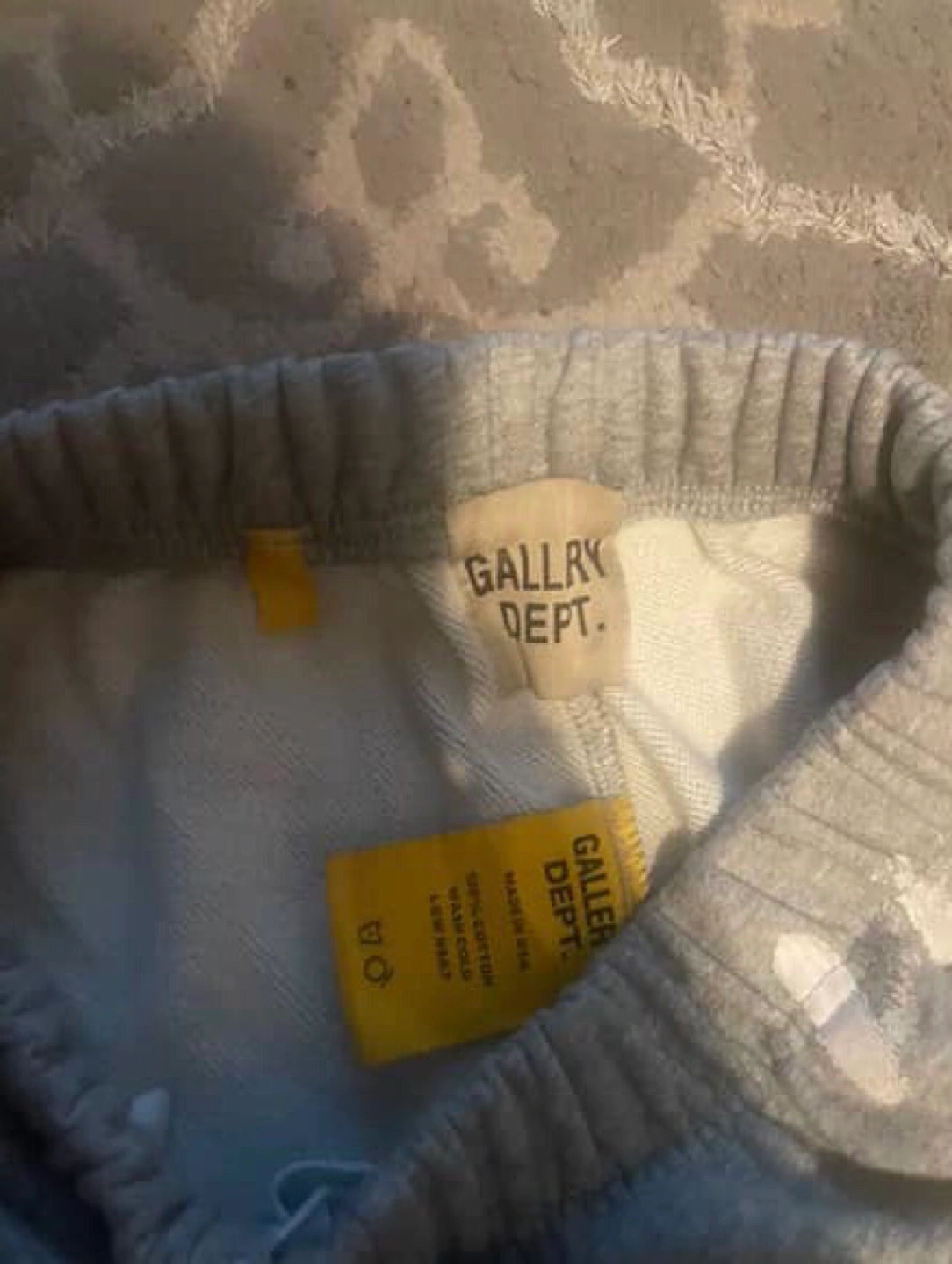 Selling a pair of Gallery Dept. sweatpants in grey. They feature a unique design with white and black accents. These pants are made of soft cotton and are super comfy for everyday wear!