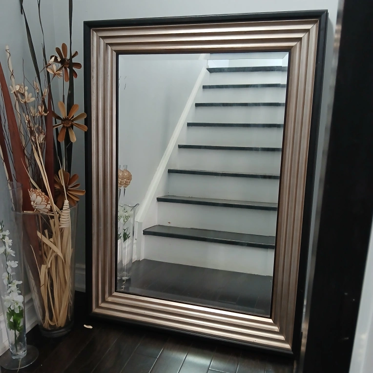 Large framed wall mirror that would look great in any room! Dimensions, 32 in width, 45 inch height, depth 3.25 inch. It has a nice, neutral frame that would match any decor. It's in excellent condition and ready to be hung up in your home or cottage. $60 Call, text 416 5593166.