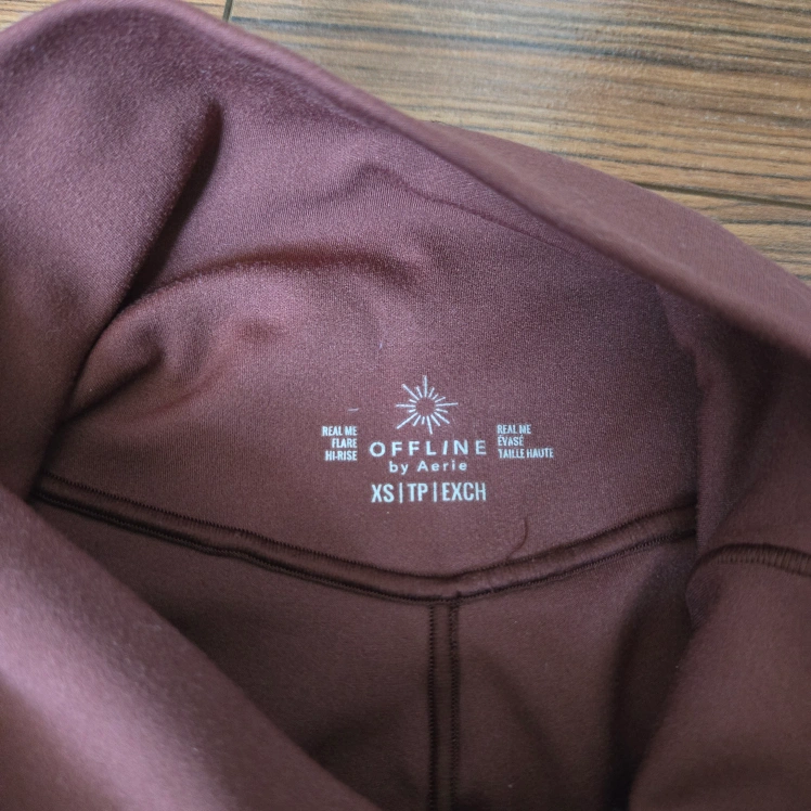 Selling a pair of Aerie Offline Real Me Flare Hi-Rise leggings in size XS. They're in great condition and have a flattering fit! The material is soft and comfortable, perfect for lounging or working out. Crossover waistband, regular length.