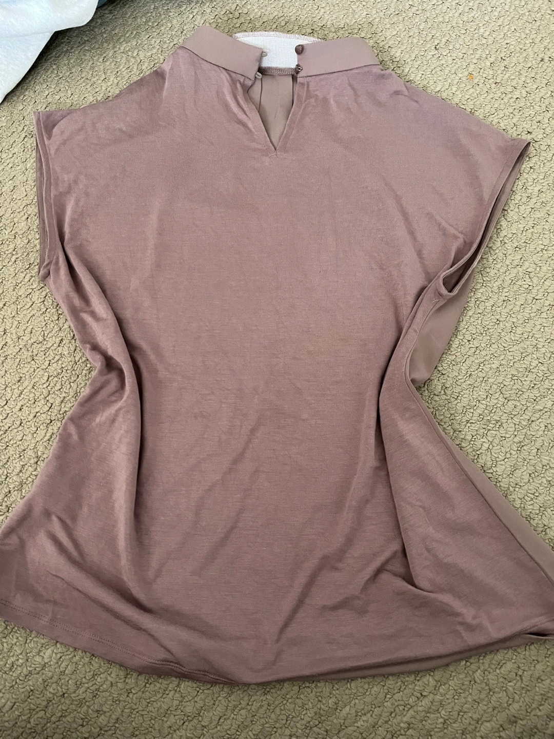 A lovely RW&CO. blouse in a neutral colour, size M/M! There are some signs of wear, but nothing too visibly damaging to the shirt. It’s a perfect blouse for work or a night out! Comes from a smoke free and pet free home