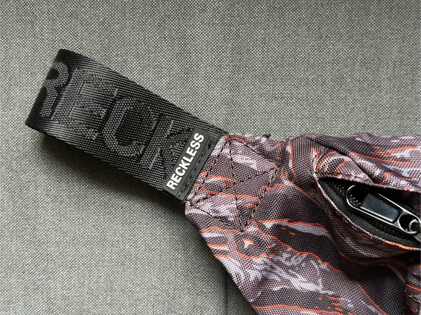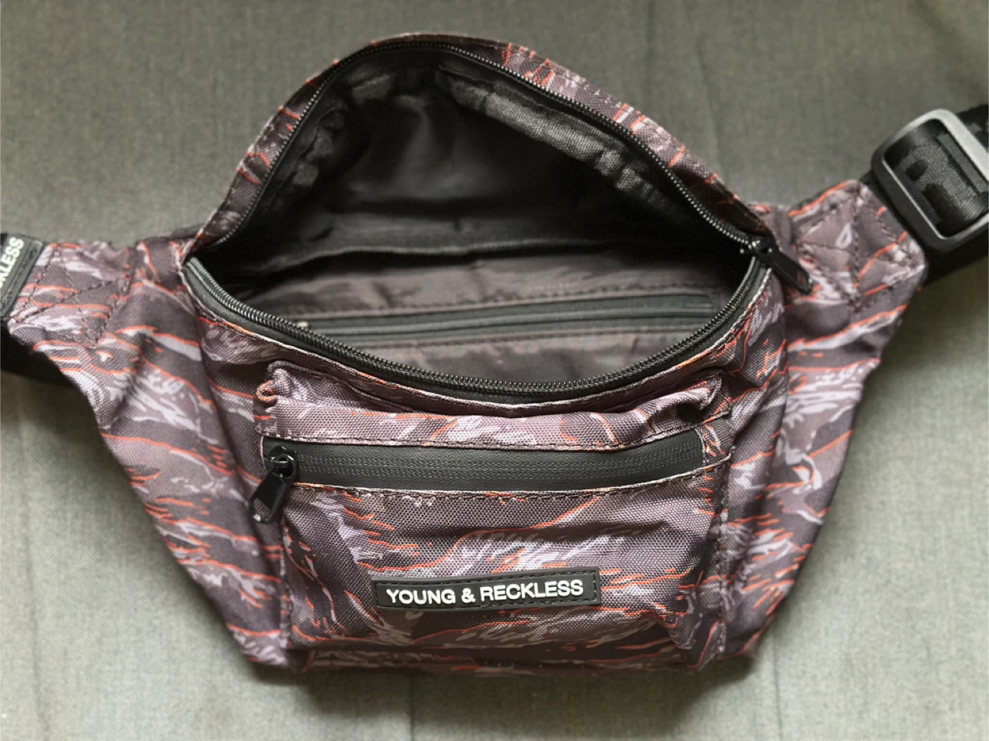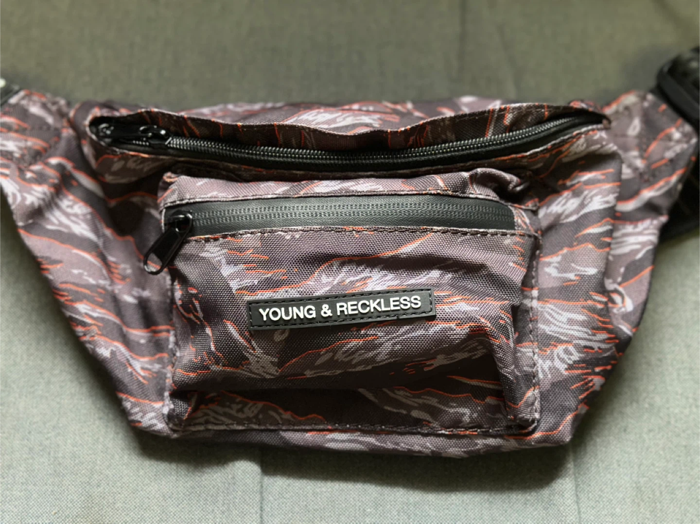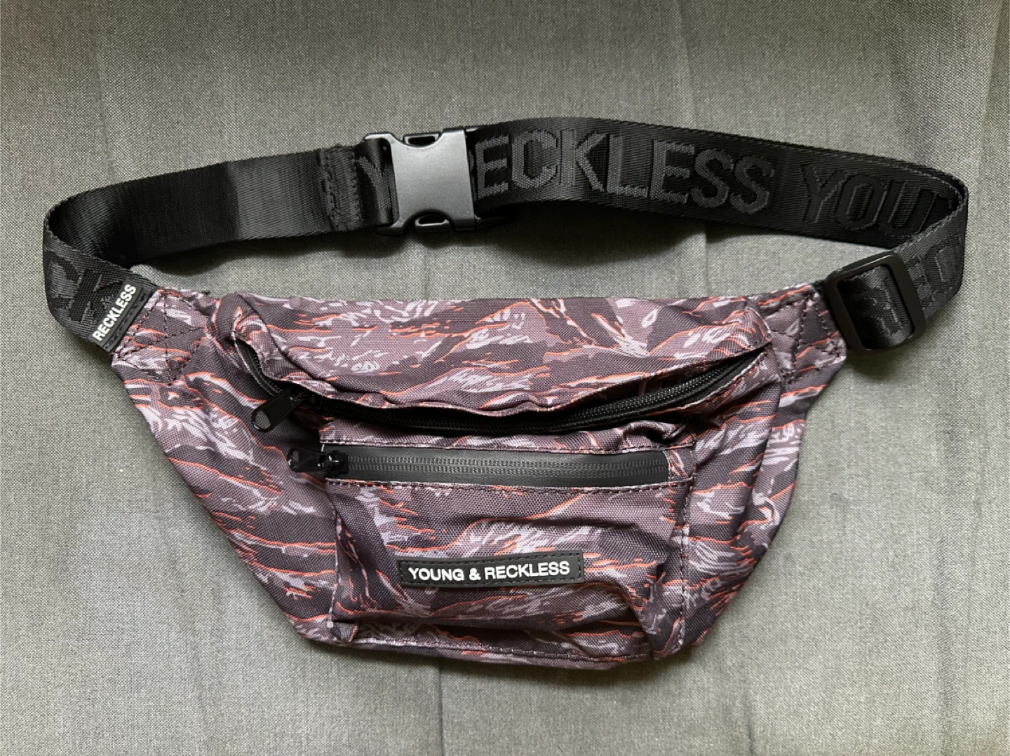 Here's a Young & Reckless fanny pack! It's in great condition and features a cool camo-like pattern. Perfect for keeping your essentials close by while you're out and about