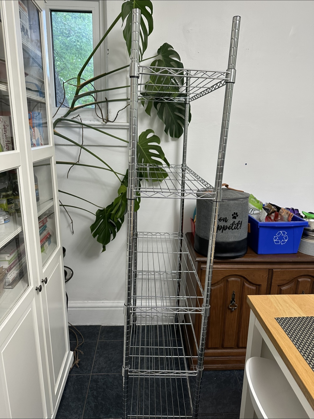 Selling a handy 5-tier metal wire shelving unit! It's perfect for adding extra storage to your kitchen or garage.