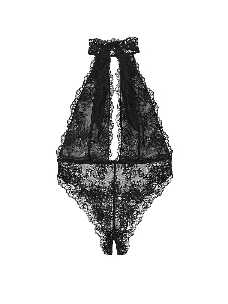 Brand new with tags Victoria's Secret Rose Lace Halter Plunge Crotchless Teddy, size S