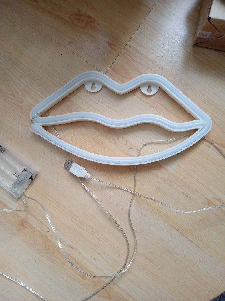 Selling a cute lips-shaped LED neon sign! It's a fun way to add some personality to any room. It comes with a USB connector and a battery pack, so you can power it in different ways. Perfect for a bedroom, dorm, or party!