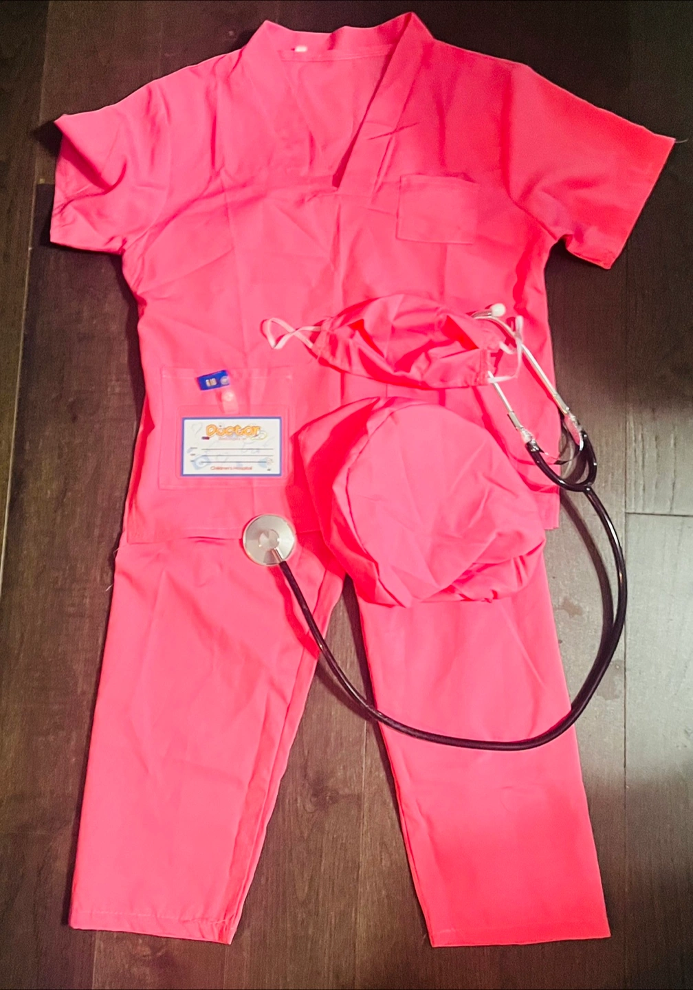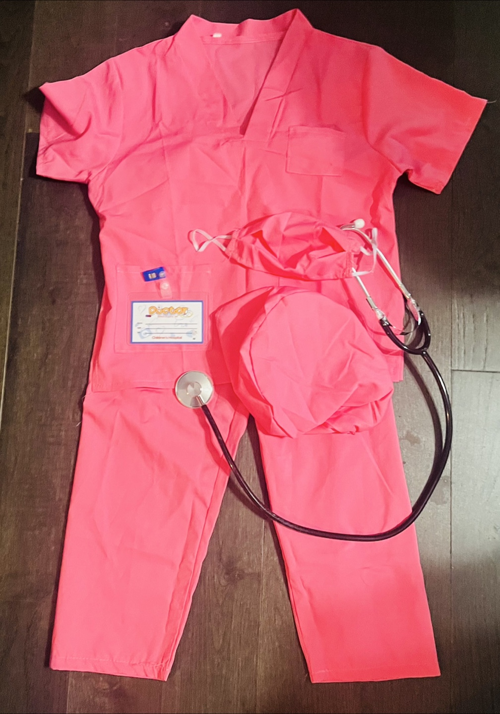 For sizes 4-6. Like new as it was only tried on. Comes with top, pants, mask, hat, ID badge and stethoscope.