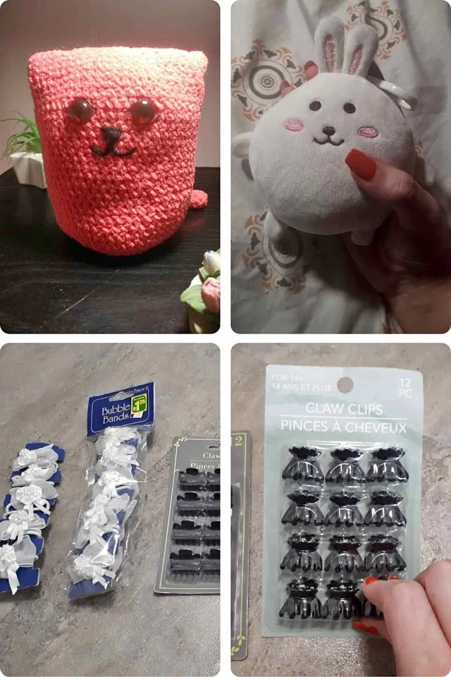 All for $8. Handmade soft plush crochet pink cat, small white kawaii bunny keychain pouch and new small hair clip sets. Located in the hunt club park area near Conroy and Johnston road