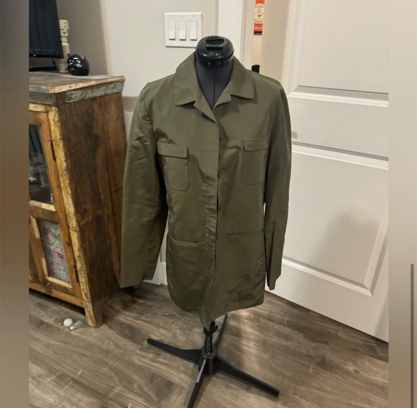 Tomaso stefanelli vintage cotton x silk military jacket - est small Cotton silk blend. Shing green tint. 4 front pocket. No stain. Fully lined. This is vintage piece but excellent condition Pit to pit 16” Length 28” Sleeves 23”