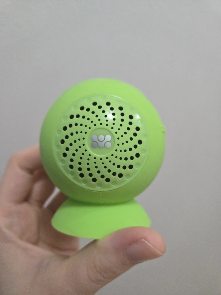 Selling a cute waterproof (!!) ball-shaped Bluetooth speaker in a vibrant green colour. Perfect for listening to music in the shower.