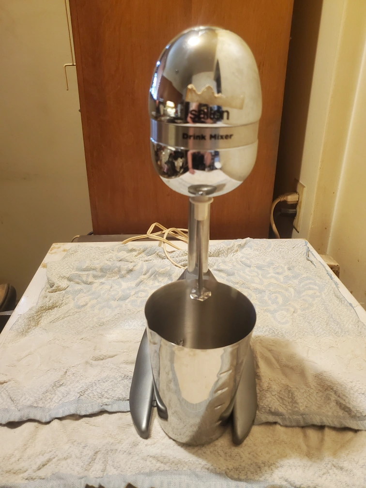 Selling a vintage drink mixer. It's in good condition and would be a great addition to any kitchen or collection. It's a classic piece that's sure to bring back memories!
