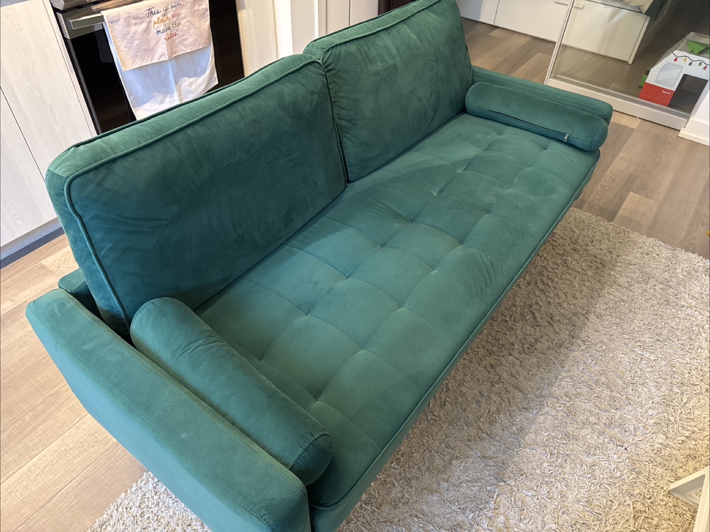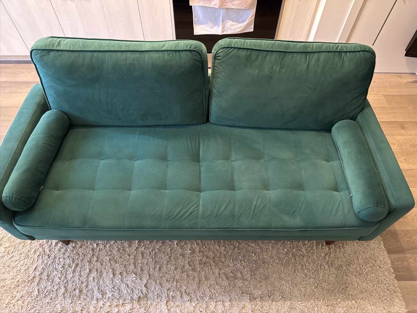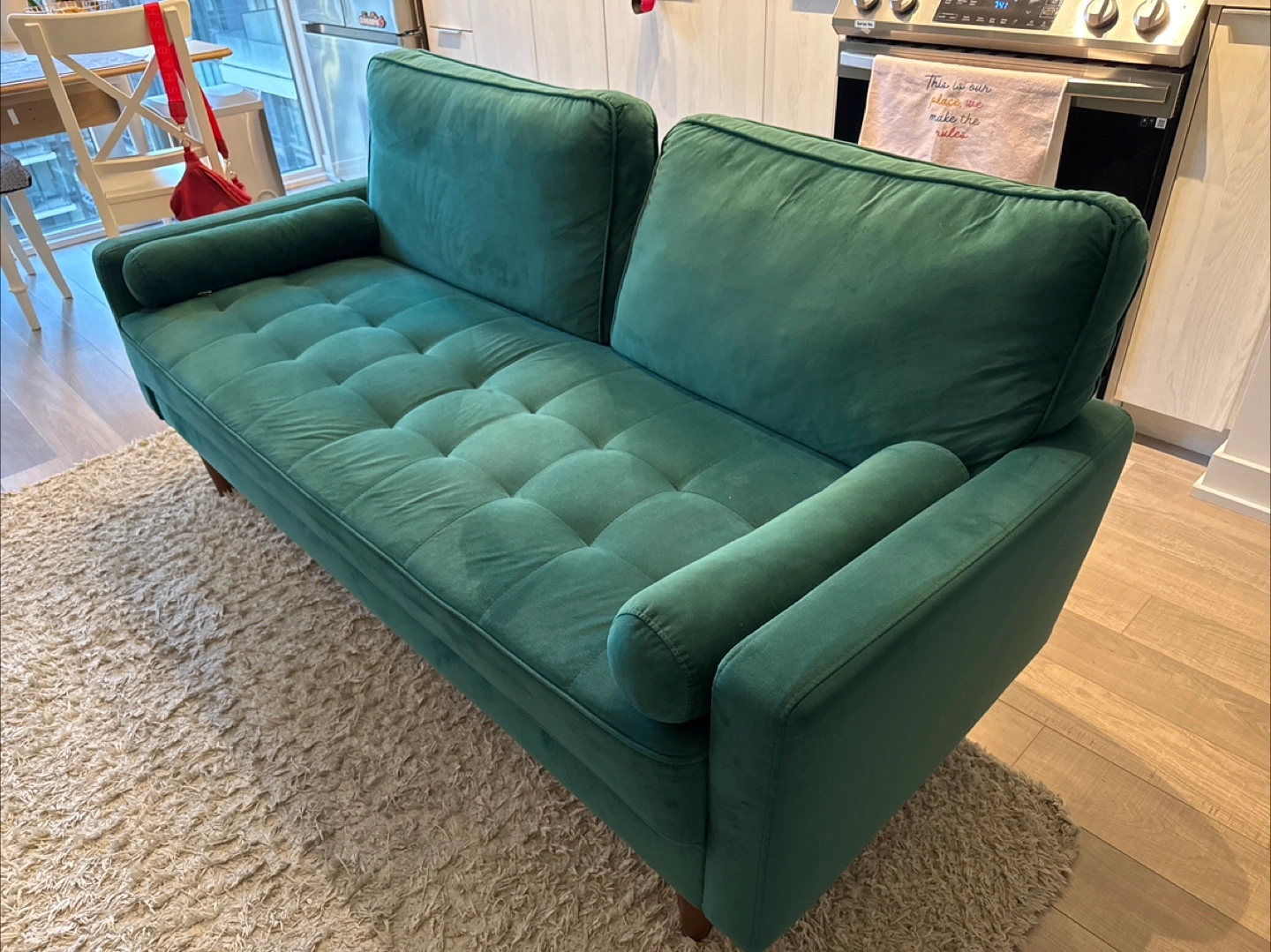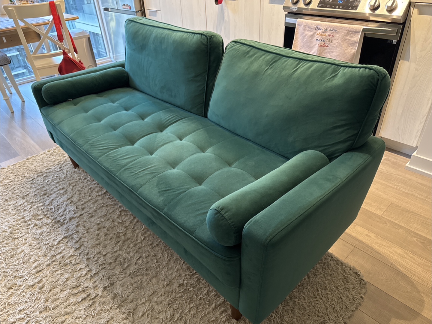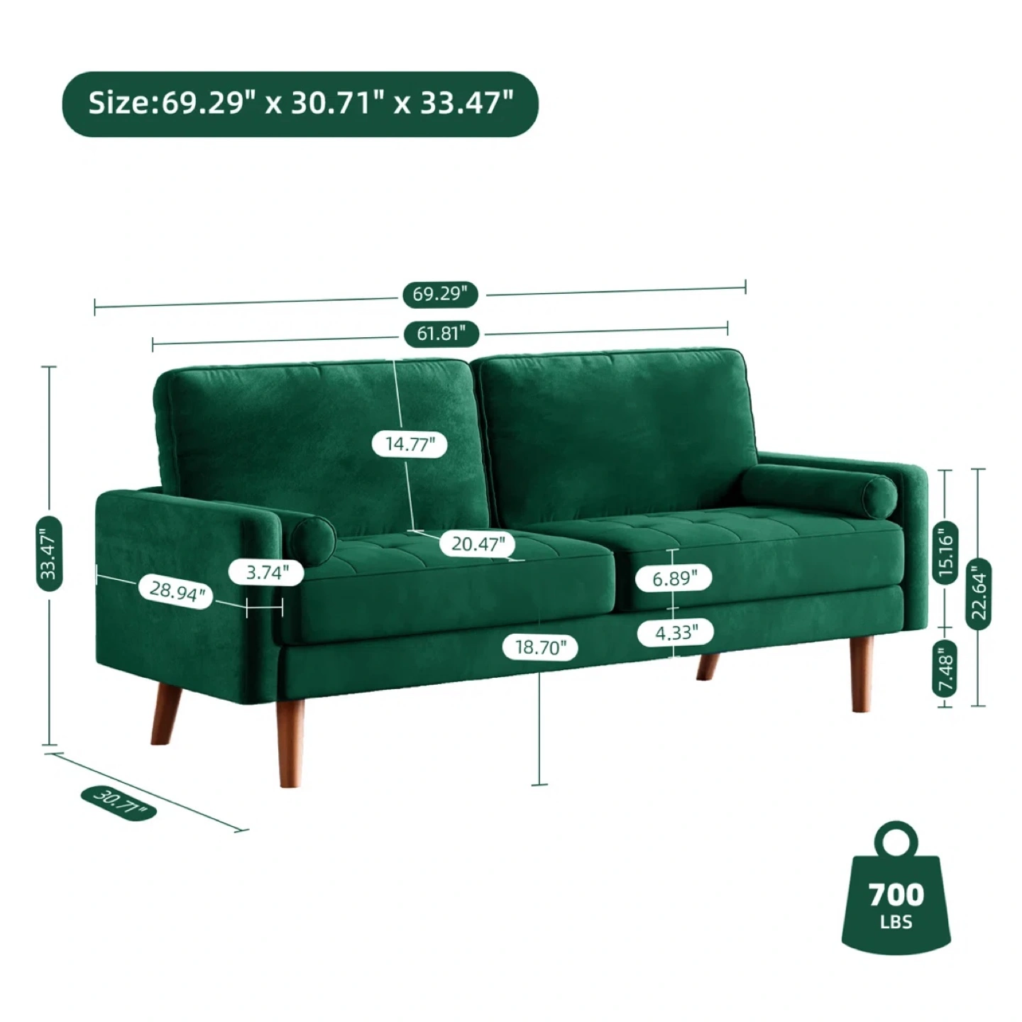 Green Velvet Sofa - 69.29" x 30.71" x 33.47"