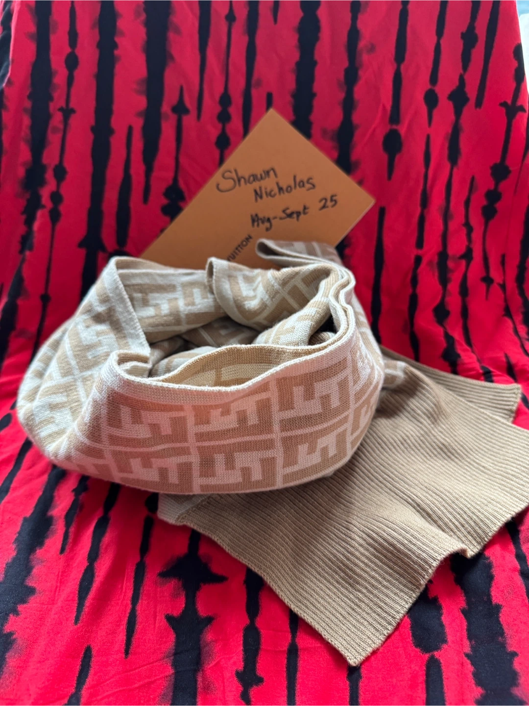 Fendi Zucca FF Monogram Wool Beige Scarf