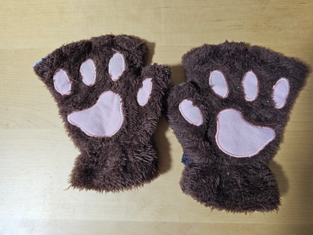 Selling a pair of brown furry paw gloves! They are super cute and cozy, perfect for keeping your hands warm and adding a fun touch to any outfit. Lightly used a few times.