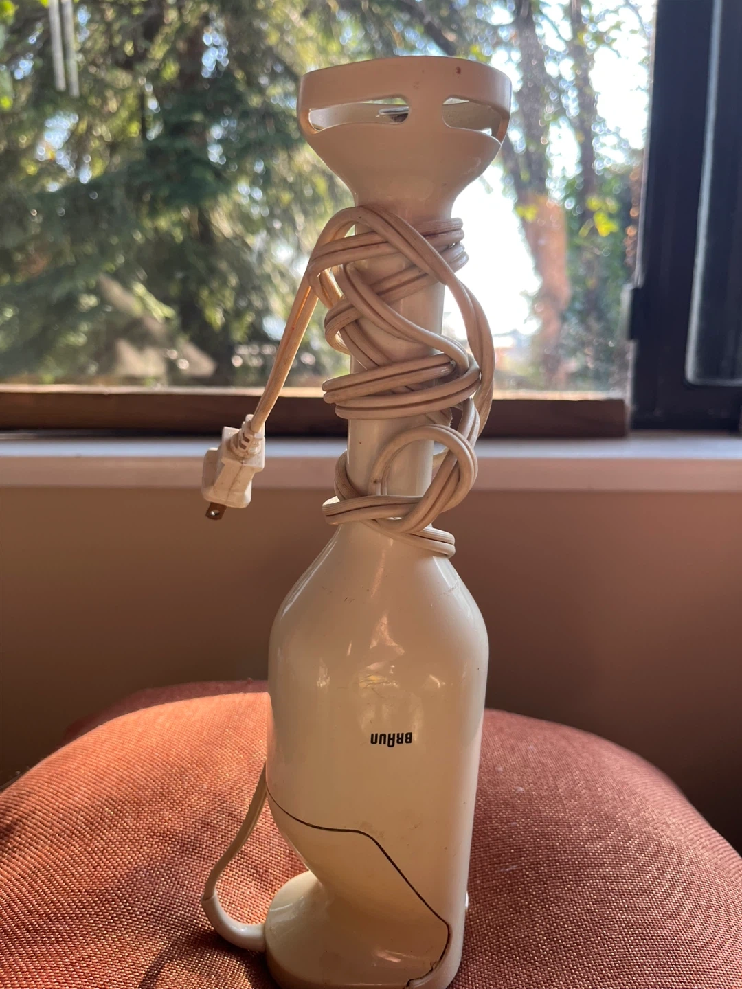 Braun hand blender in good condition. It's perfect for making smoothies, soups, and sauces. It's easy to use and clean, making it a great addition to any kitchen!