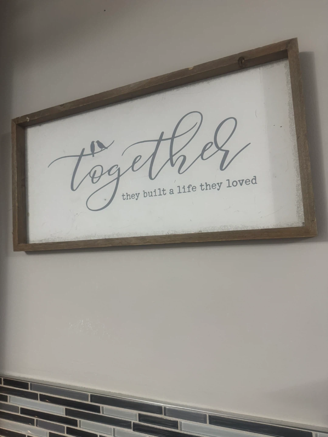 Selling a cute wall decor sign that says "Together, they built a life they loved". It's in great condition and would look lovely in any home
