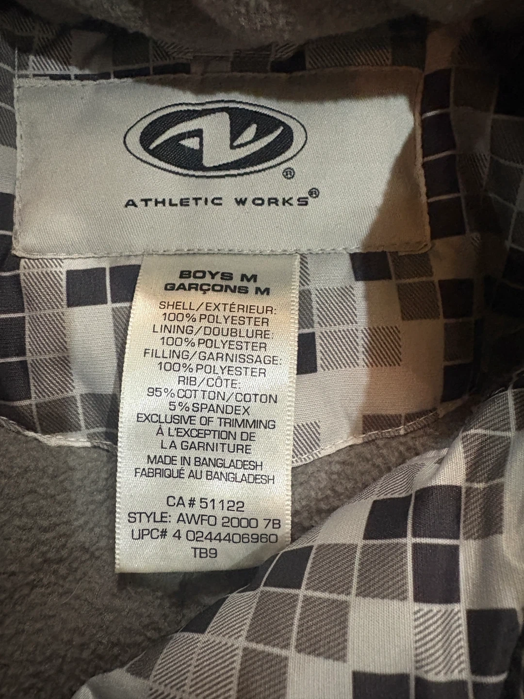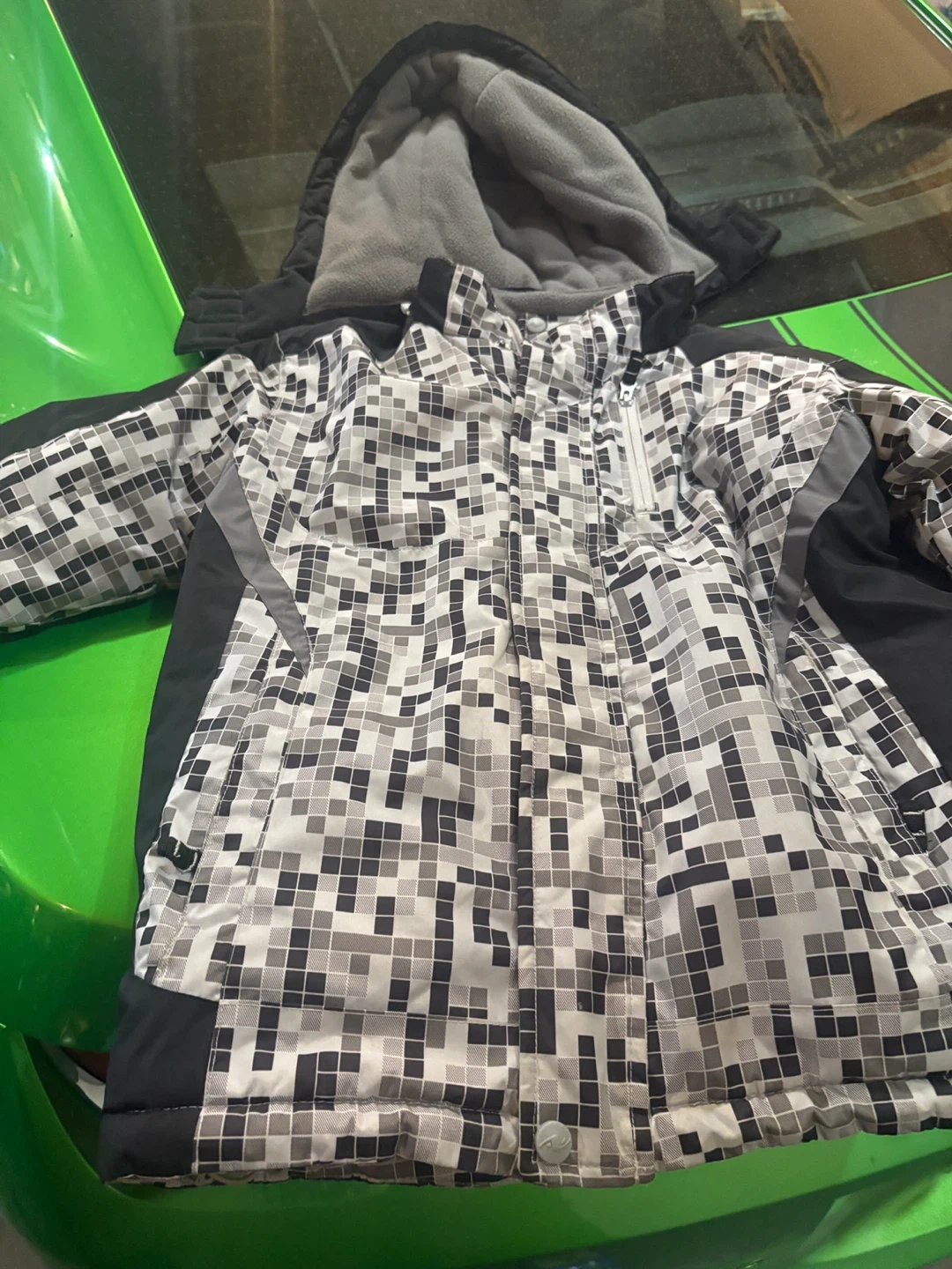 A warm and stylish winter jacket for boys from Athletic Works! This jacket is size M and features a cool black and white pixelated pattern. It's made of 100% polyester for the shell and lining, and the ribbing is 95% cotton and 5% spandex. Perfect for keeping your little one cozy during the colder months!