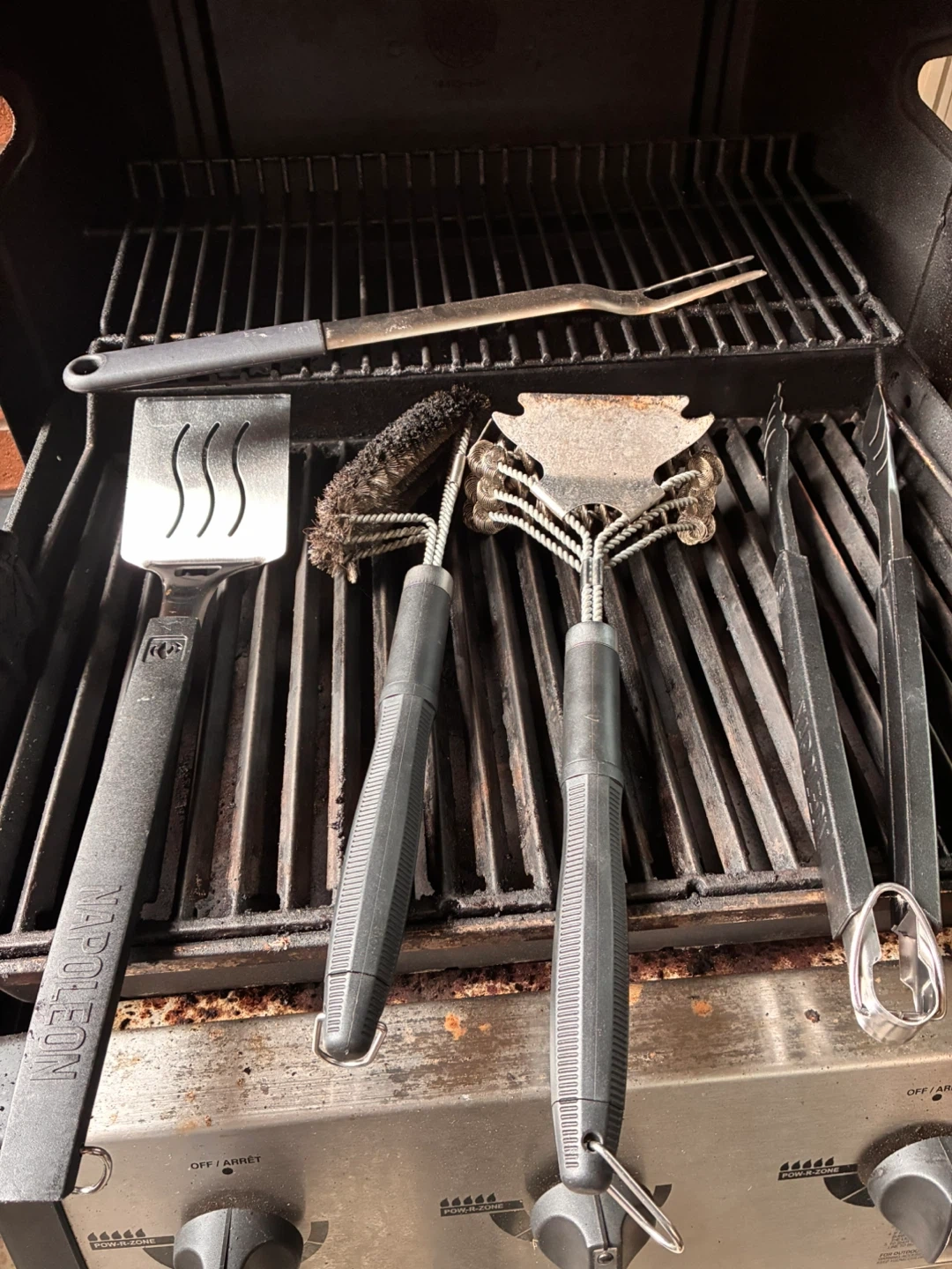 Includes: the Broil King original cover and a almost new set (rarely used) of 5 Napoleon bbq tools/cleaning brushes