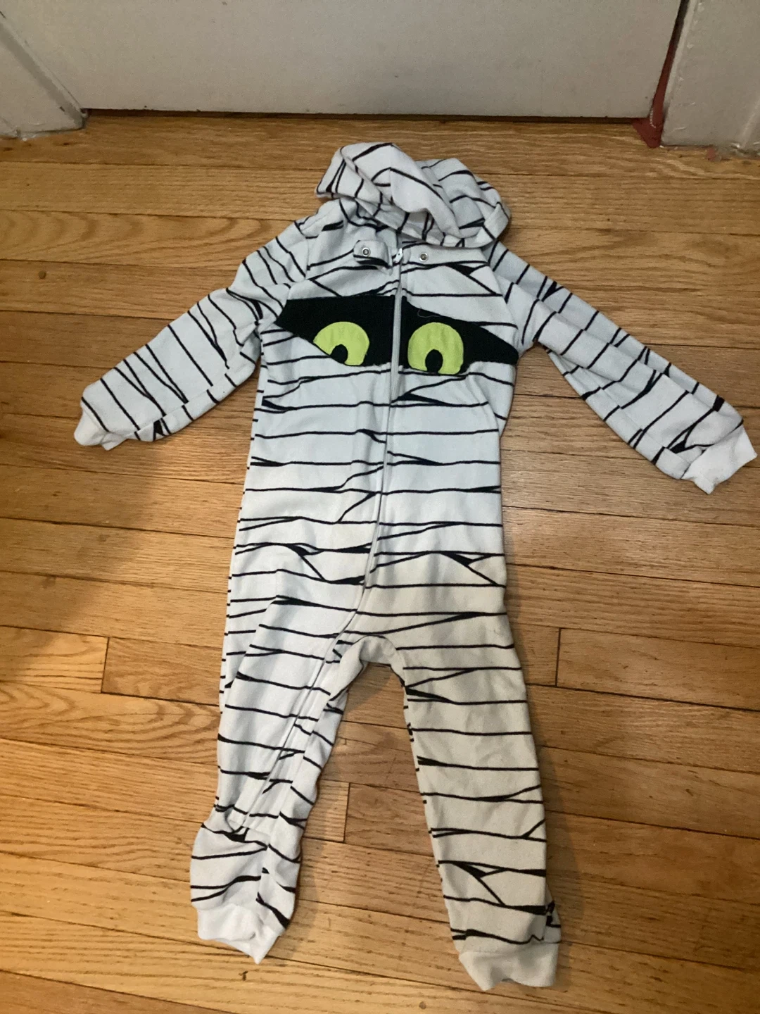 Here's a cute mummy costume onesie! It's perfect for Halloween or just playing dress-up. It's in great condition and ready for a new home