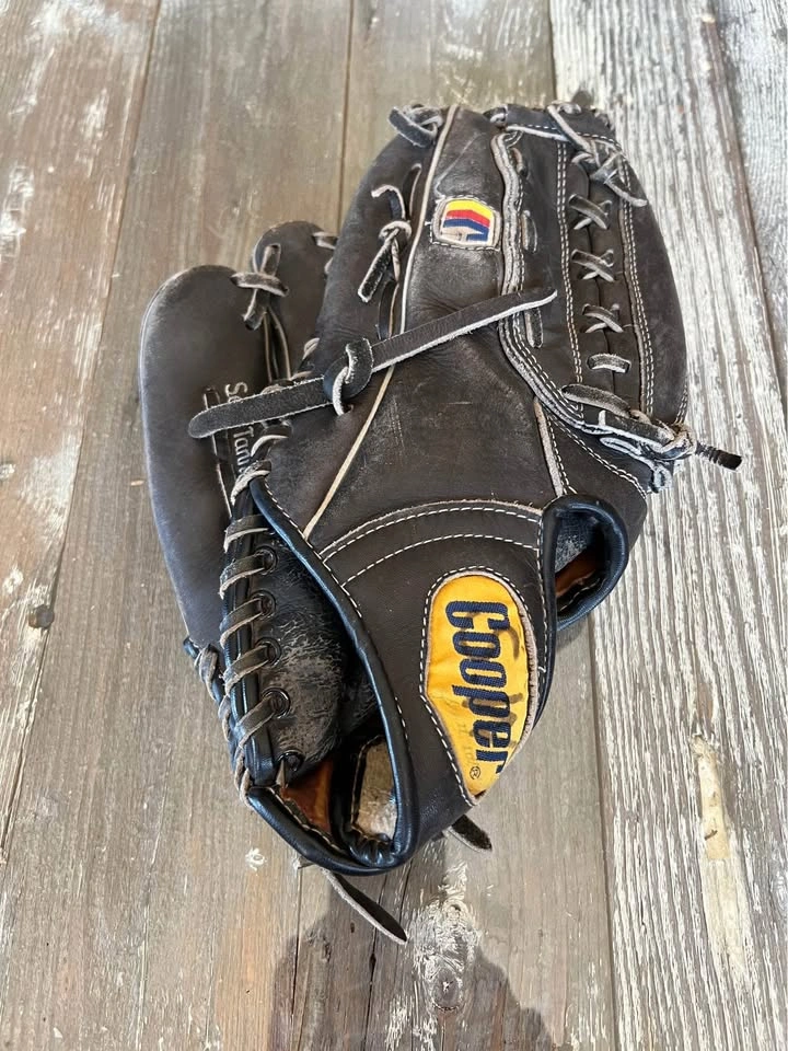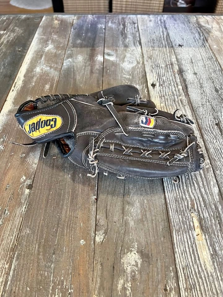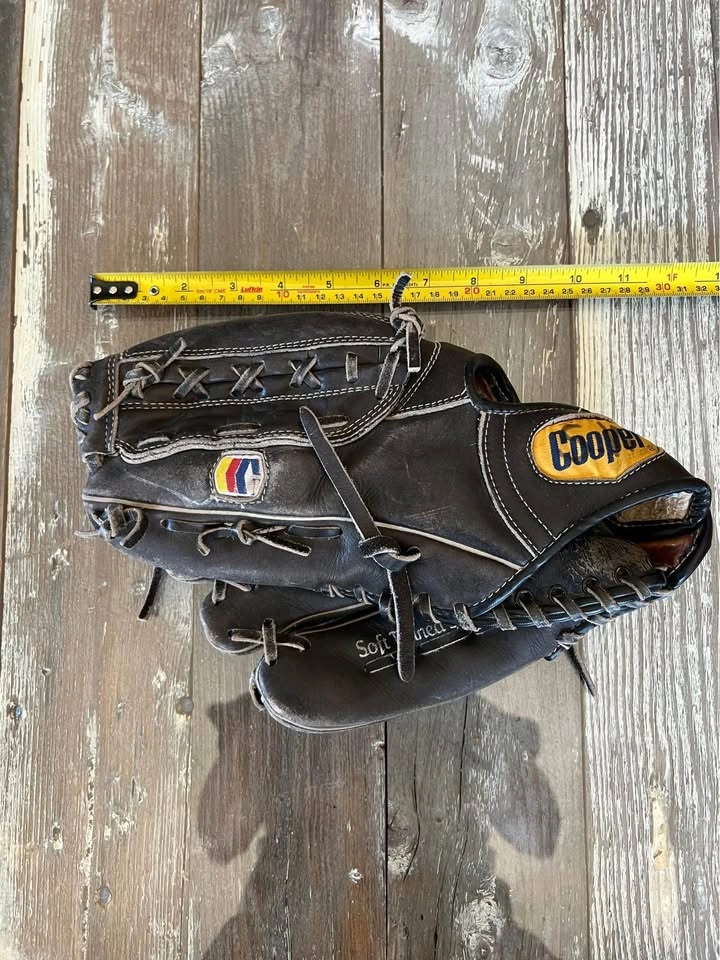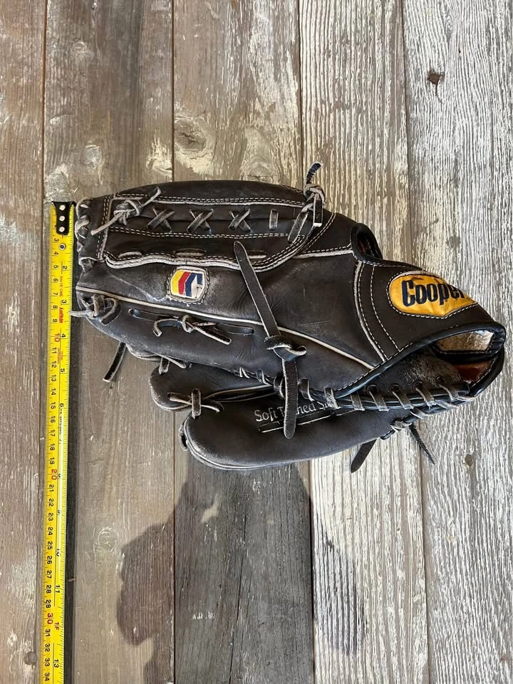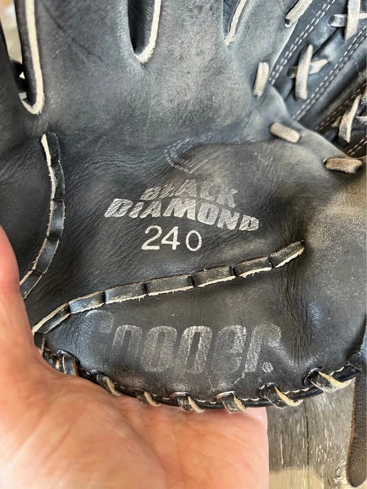 Check out this used Cooper Black Diamond 240 soft tanned steer hide, right hand outfield baseball glove, perfect for players looking for a reliable glove. It's a bit worn, as you can see, but it's ready for action on the field. 11” glove probably best fit for smaller folks 8/14 years or smaller handed women, This glove has plenty of life left, and it is looking to catch some baseballs. It's a fantastic piece of equipment that I no longer need, so it's ready for a new home!