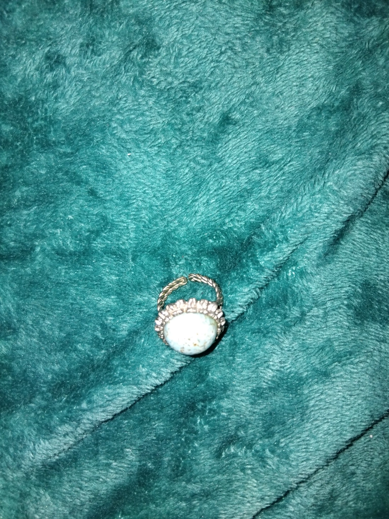 Selling a lovely vintage-style ring! It features a turquoise-coloured stone set in a detailed metal band. A unique piece to add to your collection!