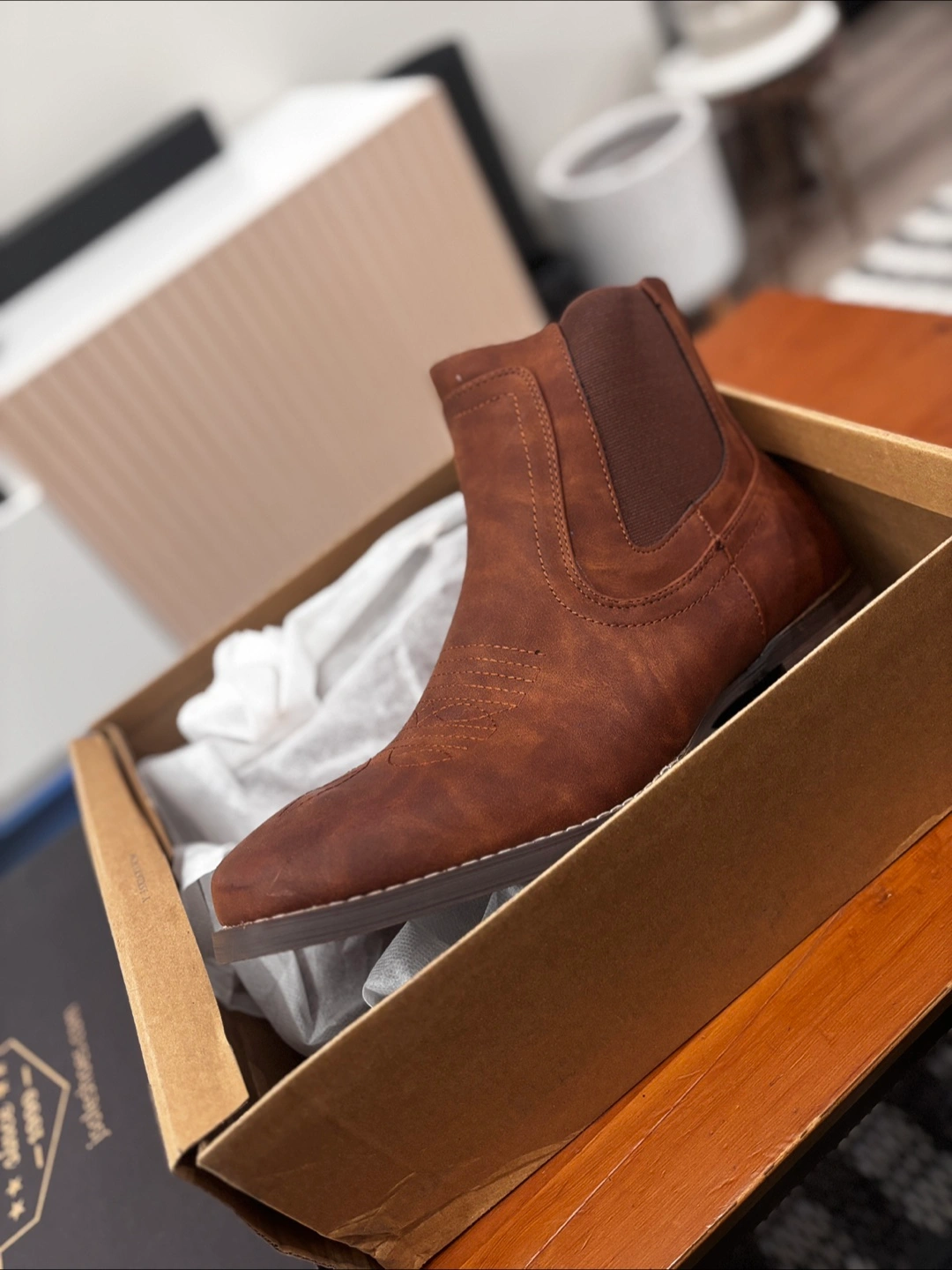 Selling a pair of boots in brown! They are in great condition and come with the original box. Size 44 (US 11)