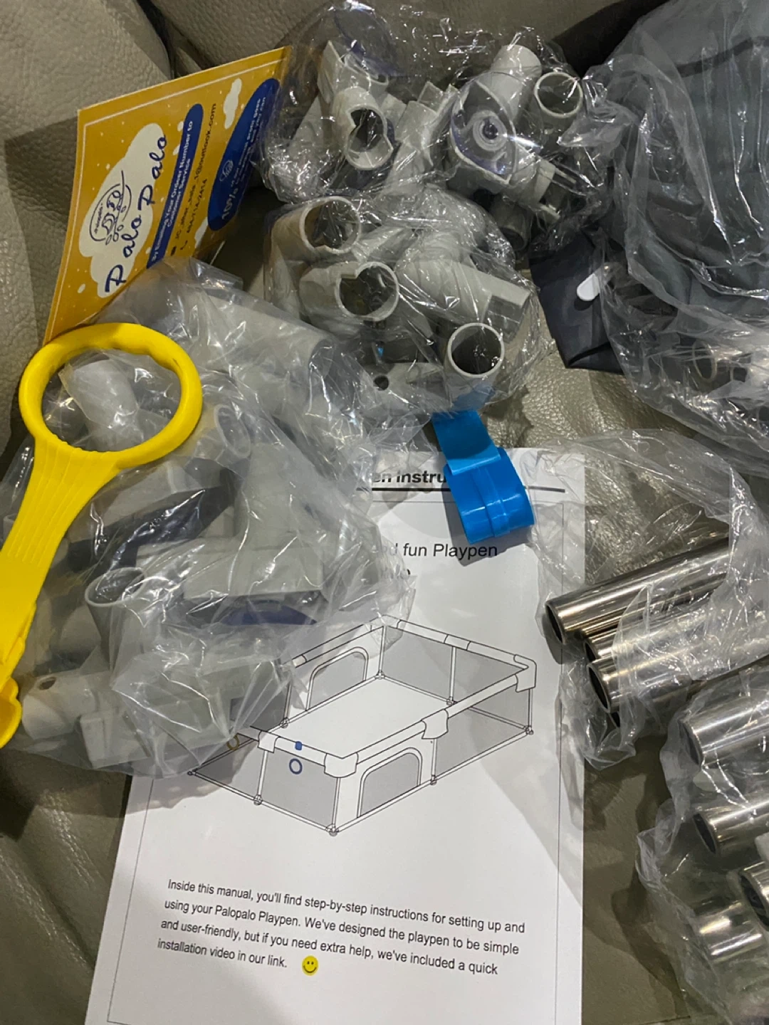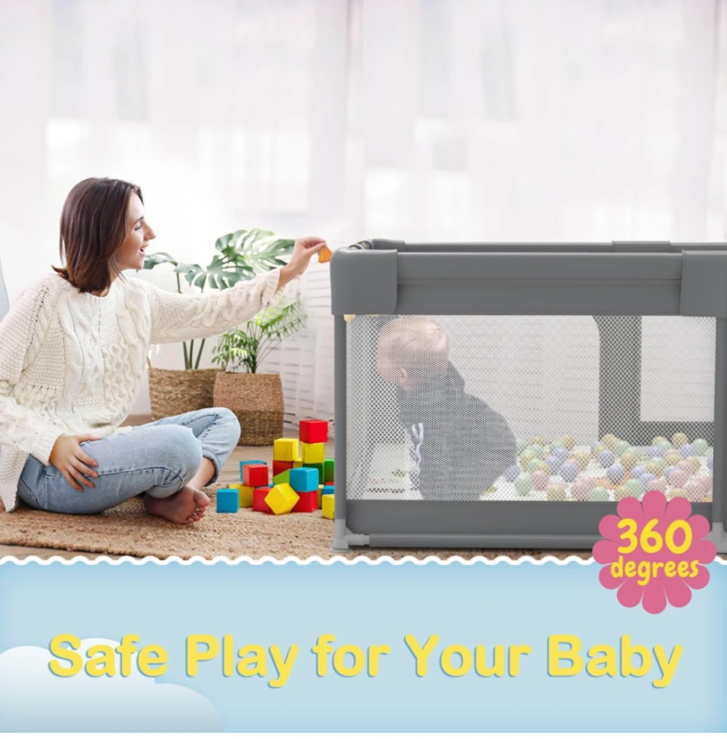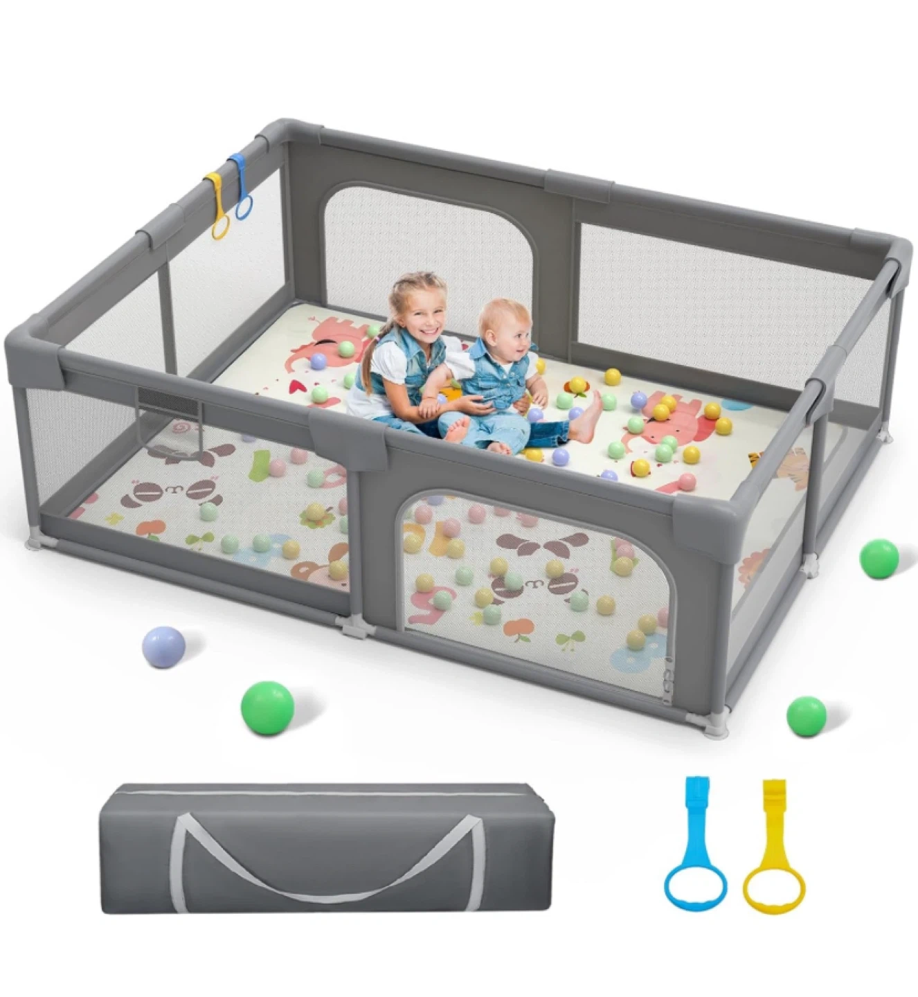 This Palopalo grey baby playpen provides a safe and fun play area for your little one! It's designed to keep them secure while they explore and play. The playpen includes a convenient carrying bag for easy storage and transport. The dimensions are approximately 69x57 inches.