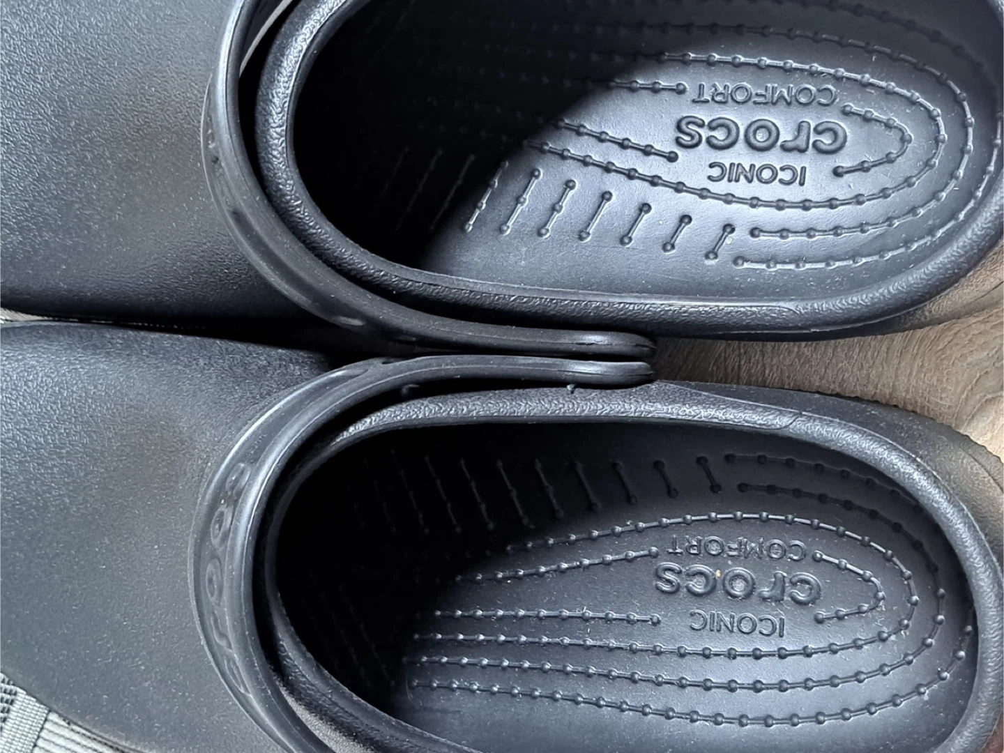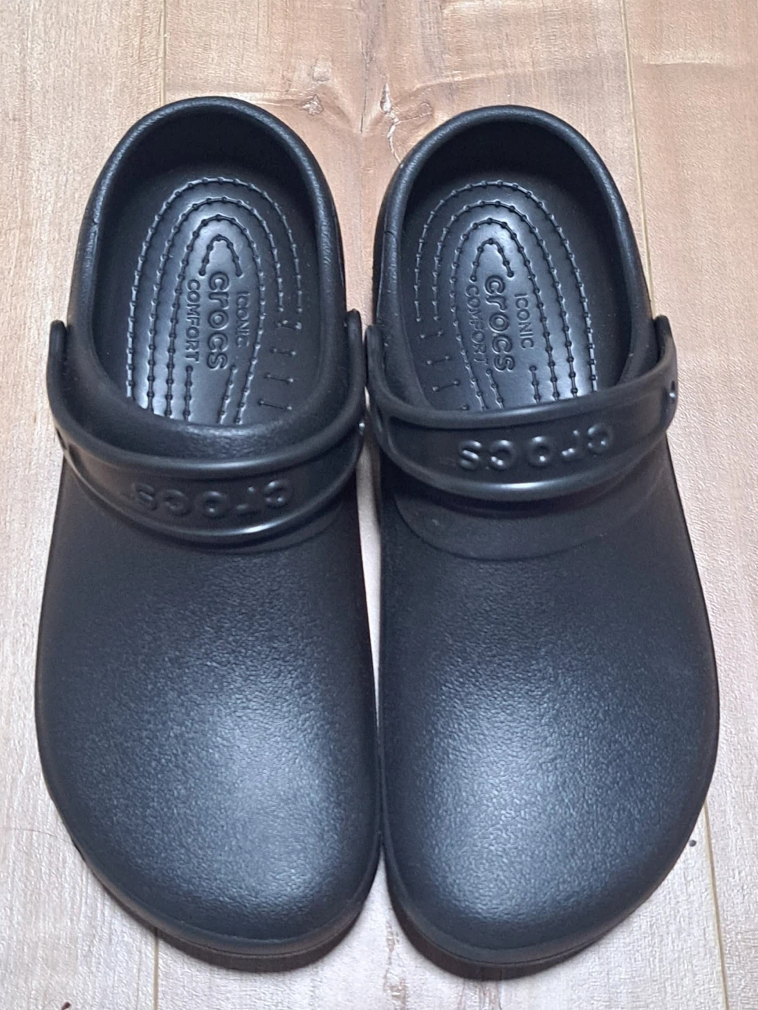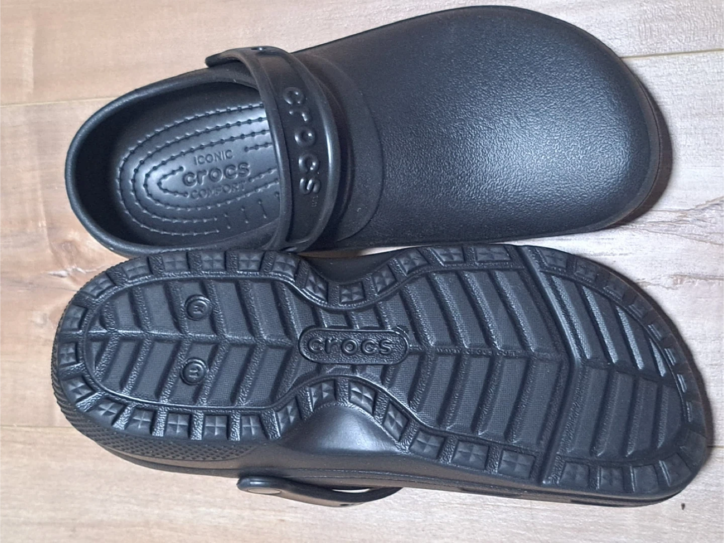 Selling a pair of Crocs Classic Clogs in black! These are super comfy and easy to slip on. Perfect for running errands or just lounging around the house. They're in great condition and ready for a new home!