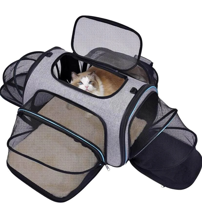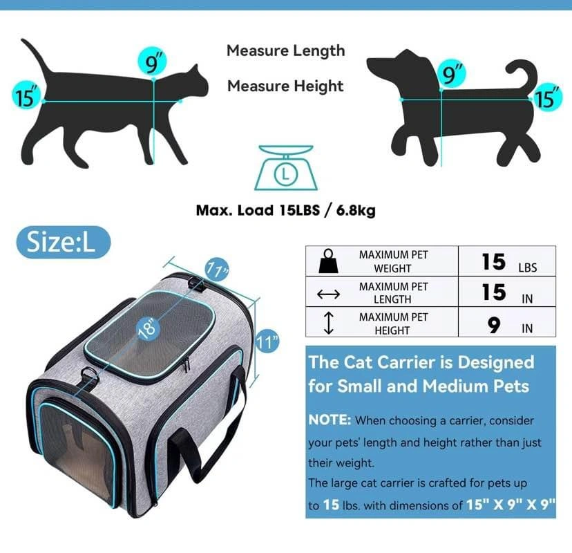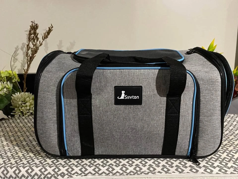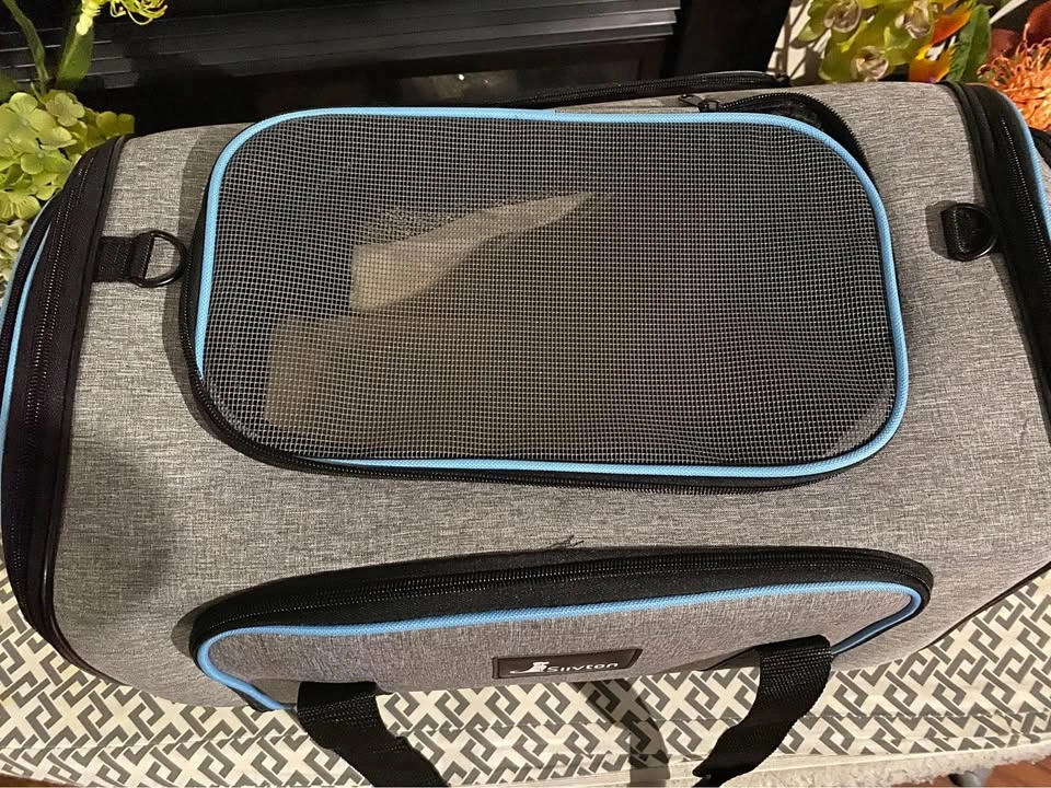 Only used once to transport my dog on a plane. It is easy to fold down and unzip four sides to create extra room for your cats or dogs to stay comfortable. Allows your pet to move around more comfortably and reduces the anxiety of confinement. Cash only
