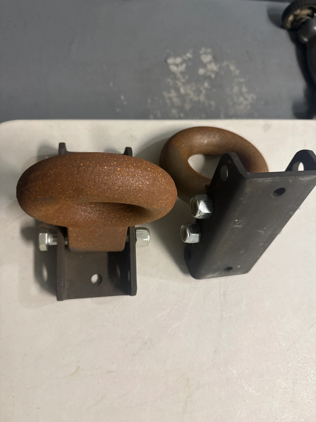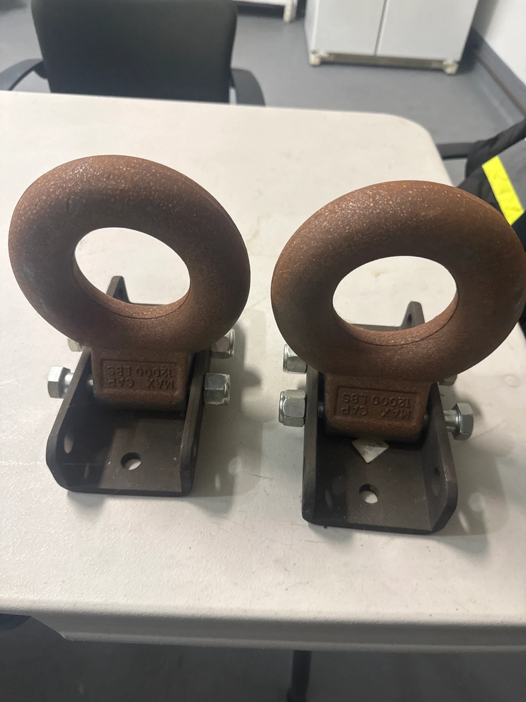77Selling a pair of tow rings, each with a maximum capacity of 12000 lbs. They show some signs of rust but are still fully functional and ready for use. Perfect for towing or recovery purposes
