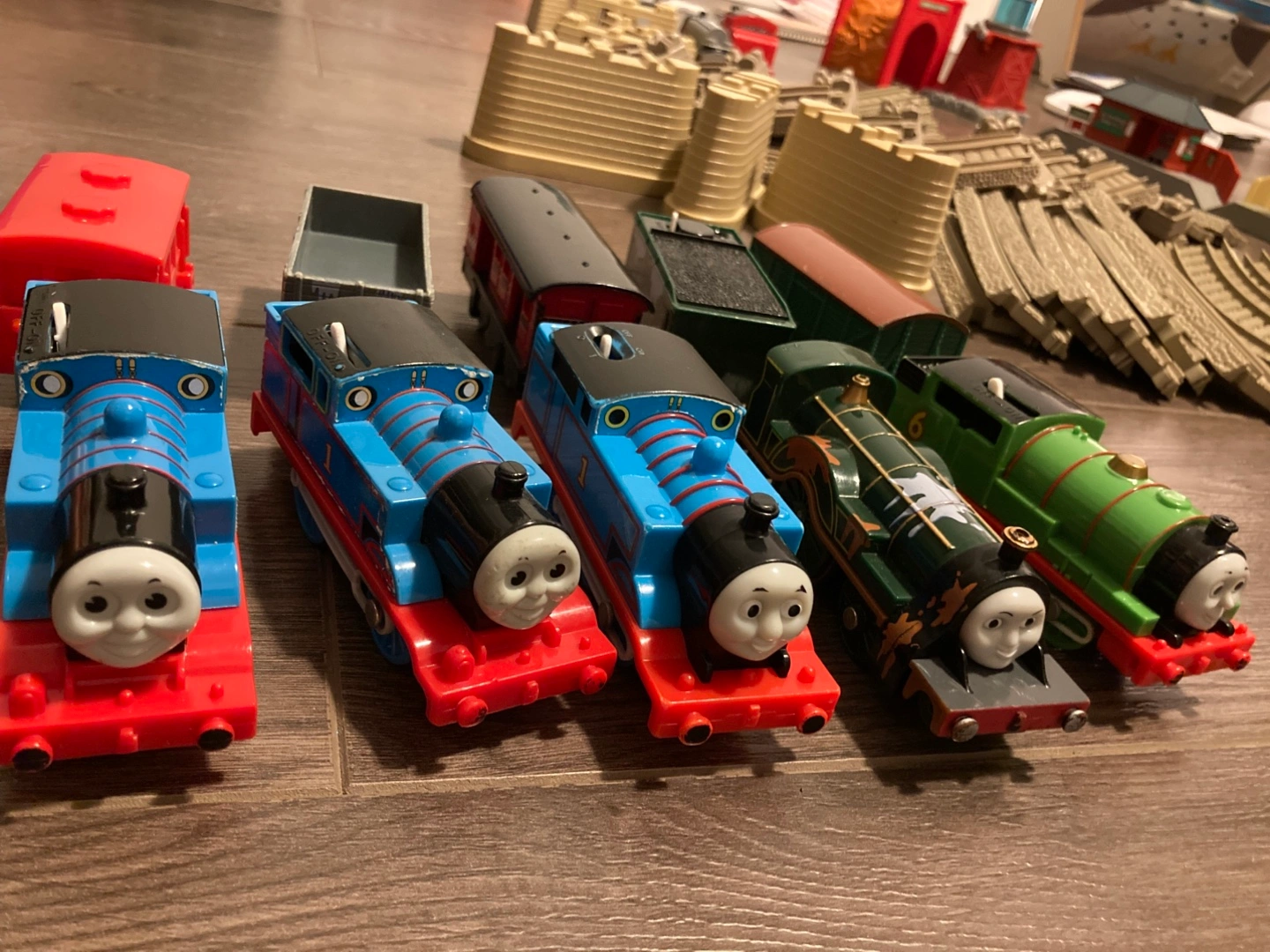 Selling a Thomas & Friends train set, complete with multiple train cars and lots of track pieces! Good for little kids who love to play with trains!