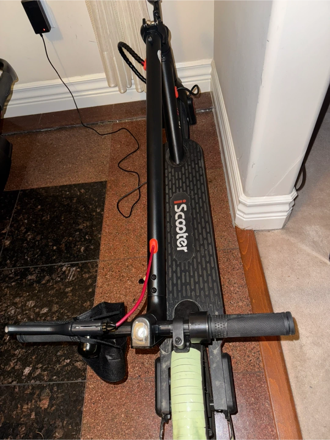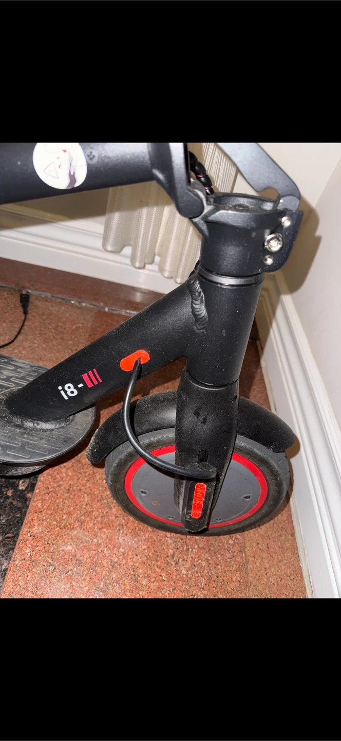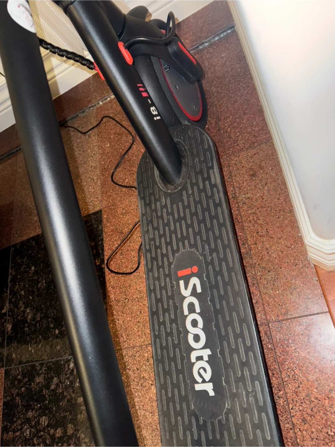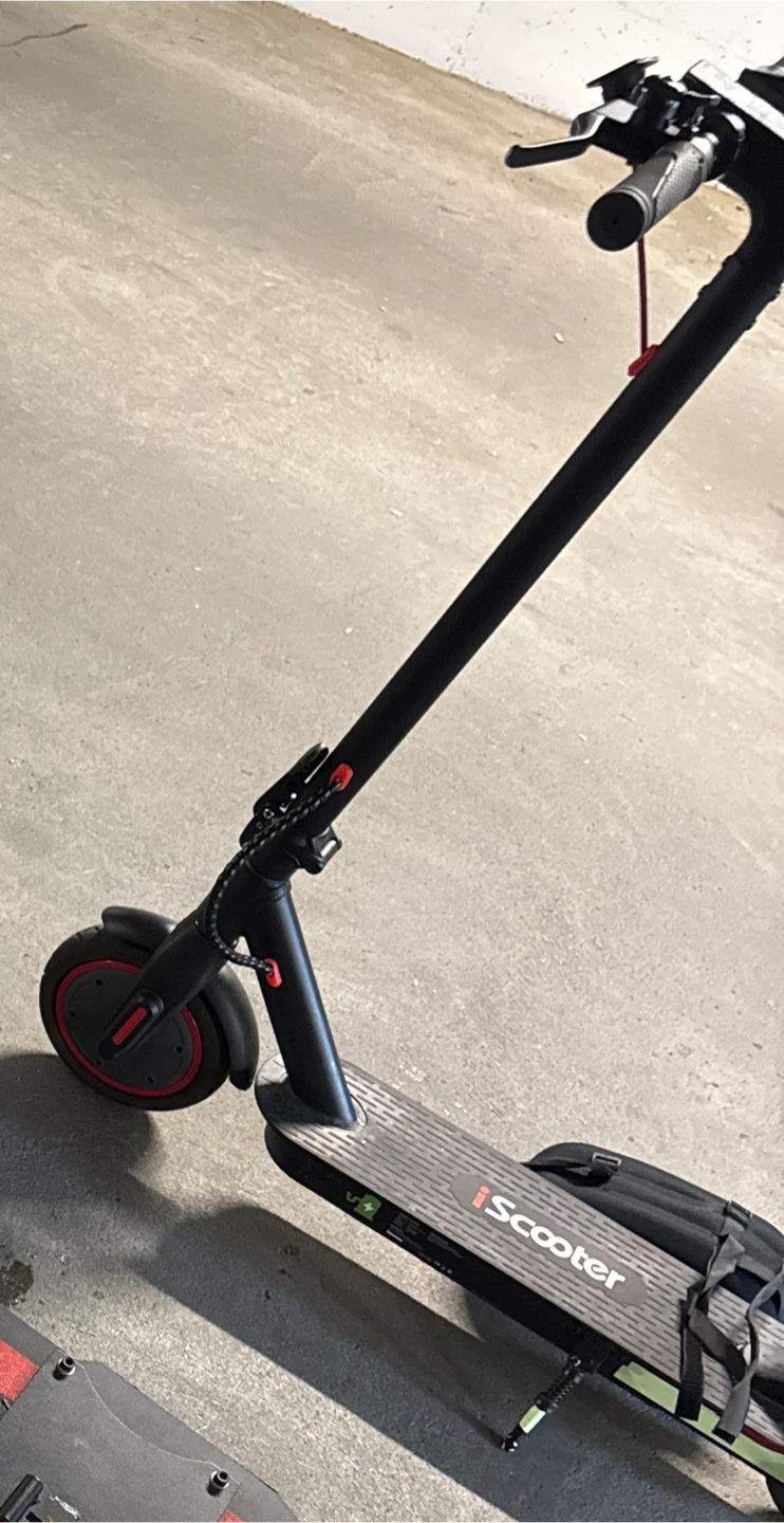 Selling an iScooter i18-III electric scooter. It's black with red accents. Perfect for getting around town!