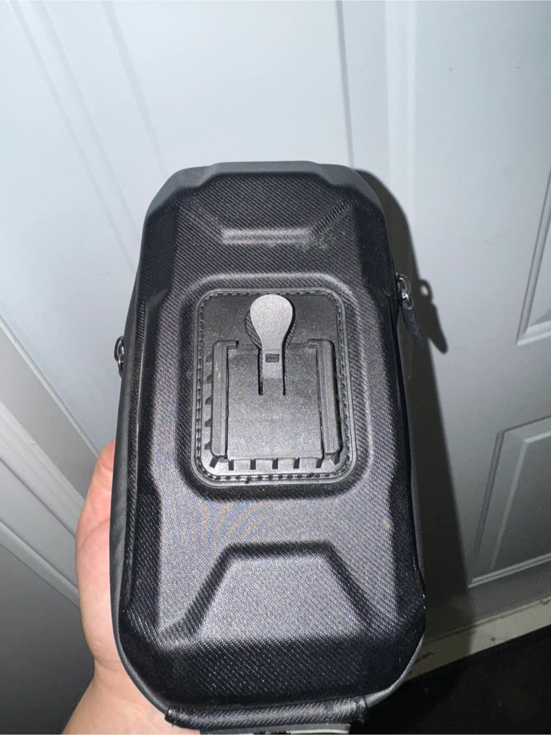 With helmet and phone holder.
