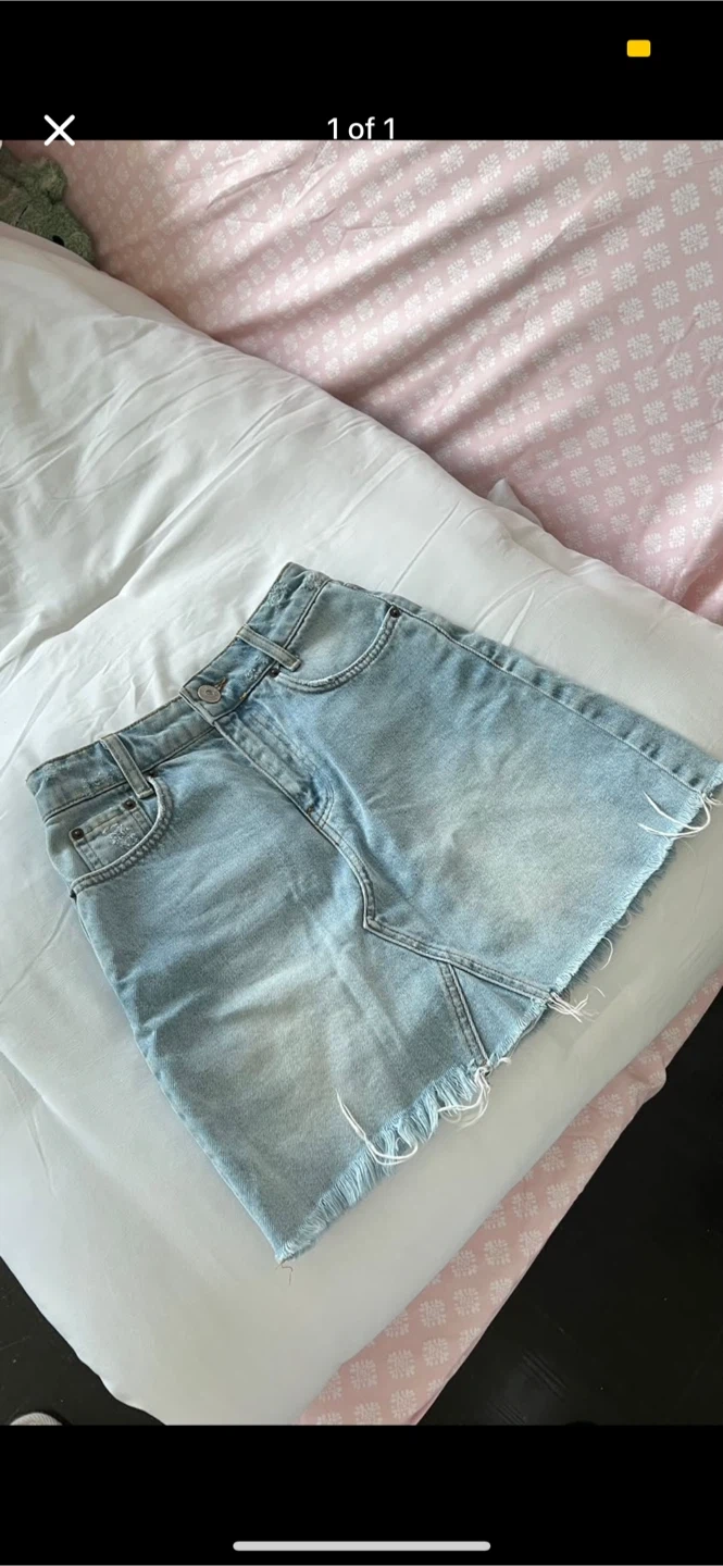 Light denim skirt from Urban Outfitters BDG, size XS, barely worn Zip-up and button in front, with fringe bottom details Can pickup in Vancouver near Kerrisdale, cash or e-transfer preferred.