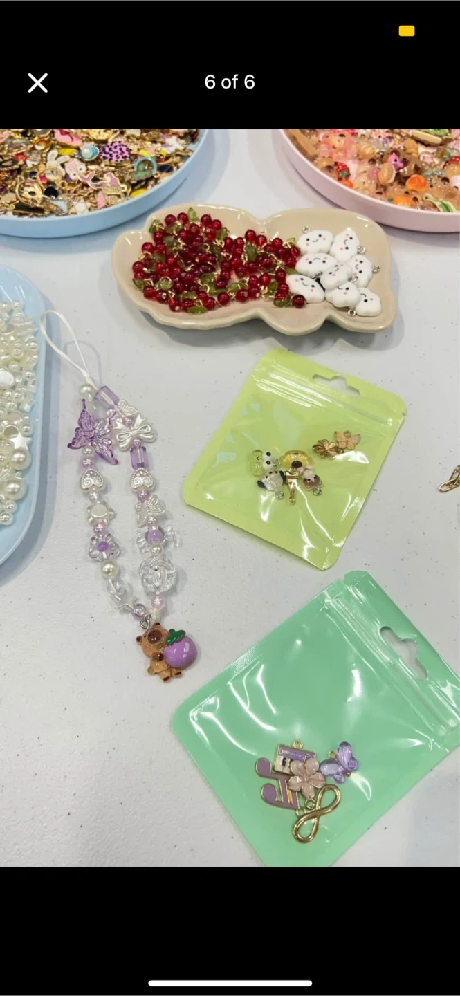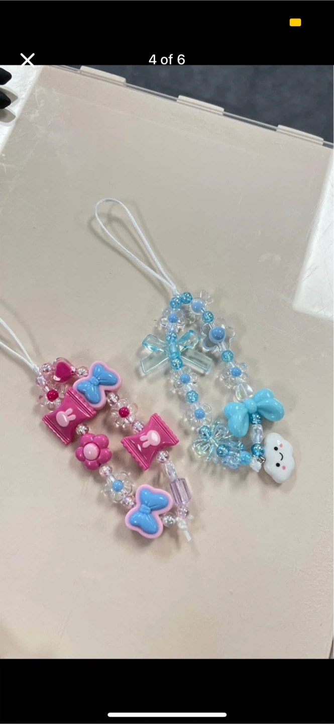 Adorable phone charms, choose from pink, purple, green, blue, pearl beads or a mix of multiple colours! 🩷 Hundreds of charms to choose from, including Sanrio, capybaras, kittens, bread, letters, cute gold designs… ✨ White and black cord available. Phone charm: $14 Attach a charm: $2 Let us know how many charms you want and what color/style, and we will create your custom! 💌 Local pickup available in Kerrisdale 📦 Shipping available at additional cost 📲 Message to order or check out our Instagram @klcharmedandco for more! Let your charm tell your story 🌟