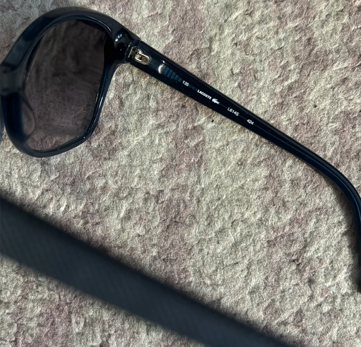 These Lacoste L614S sunglasses feature a stylish blue frame and provide excellent sun protection. The glasses are in great condition, having been lightly used, offering both fashion and functionality.