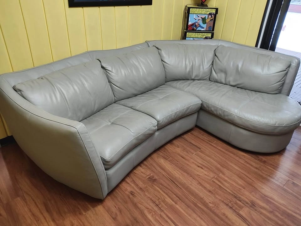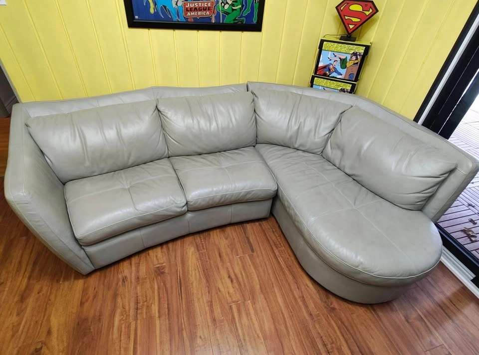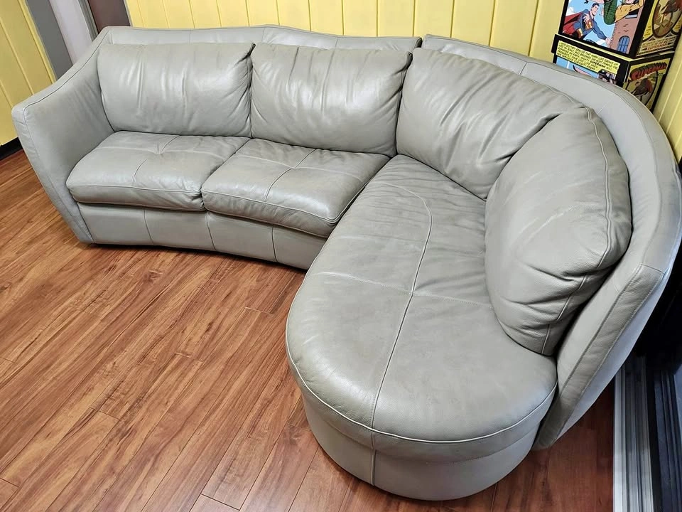 This gently used sofa needs a new home as we are redecorating the room. It’s genuine leather. Nothing is wrong with it- no tears or scratches. Three to four people can sit comfortably on it. Detaches for transportation into 2 pieces. Length is 8 ft L- Section is 6ft Price is firm. Cash only. Final Sale