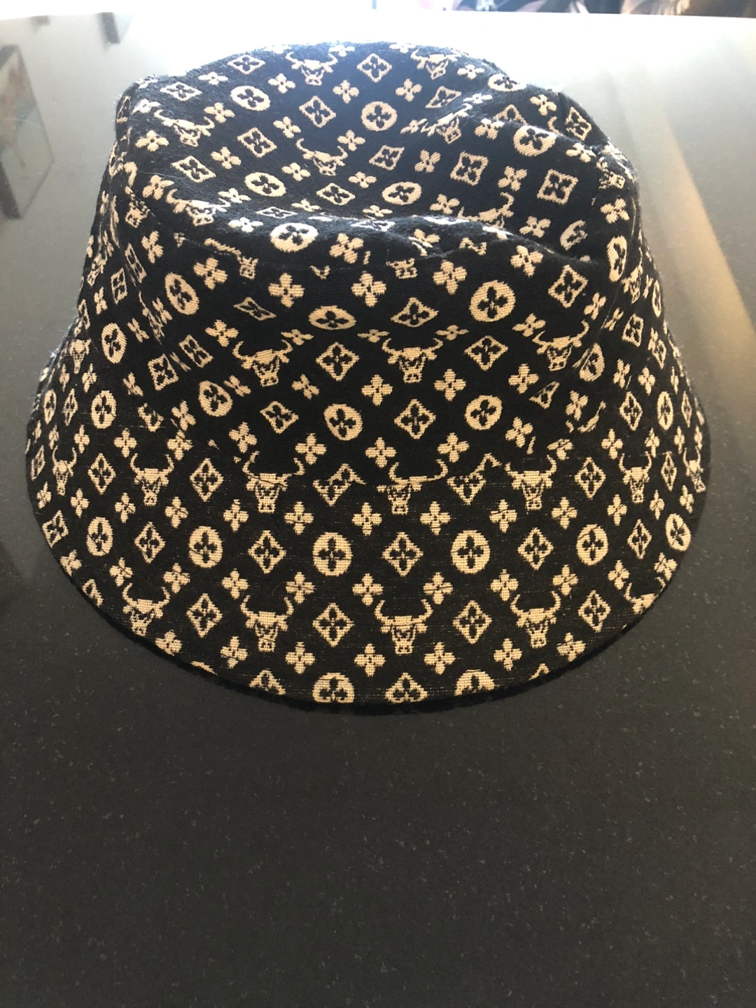 Selling a Louis Vuitton bucket hat in size M. The hat is made in Italy from 100% cotton and 50% viscose, giving it a comfortable feel. It features the iconic LV pattern. Originally, this hat retails for $970!